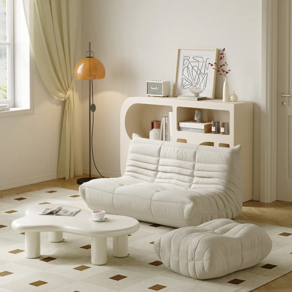 Details:【Lazy Chair】The timeless collection features an ergonomic design with multiple-density foam construction and lamb fleece covers, making each piece both visually attractive and physically inviting【Armless Lounge Chair】An armless design with button tufting creates the perfect blend of classic and modern.【High-Density Rebound Sponge】Using high-quality raw material sponge, slow rebound and toughness, soft sitting feeling, not deep collapse【Single Sofa +Ottoman】Without wood or metal frame, the foam-overstuffed interior gives birth to extraordinary comfortable experience from sitting to dozing, all for your exclusive sink-in feel.【Ersatile Usage】Lounge in style with floor seating for adults and kids! Whether you need a gaming chair, meditation couch with back support or floor sofa for your reading book, this lounge Chair is the perfect addition to your sectional.