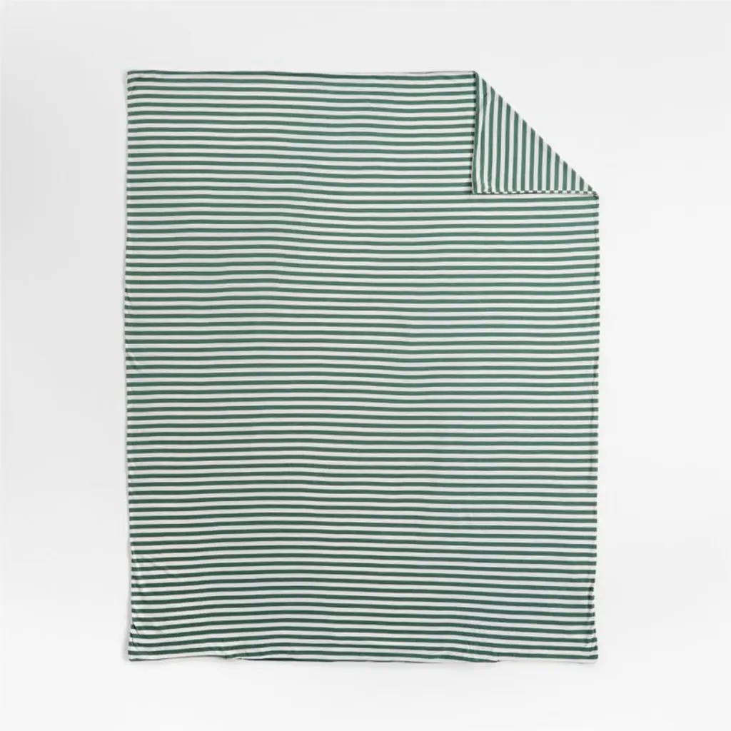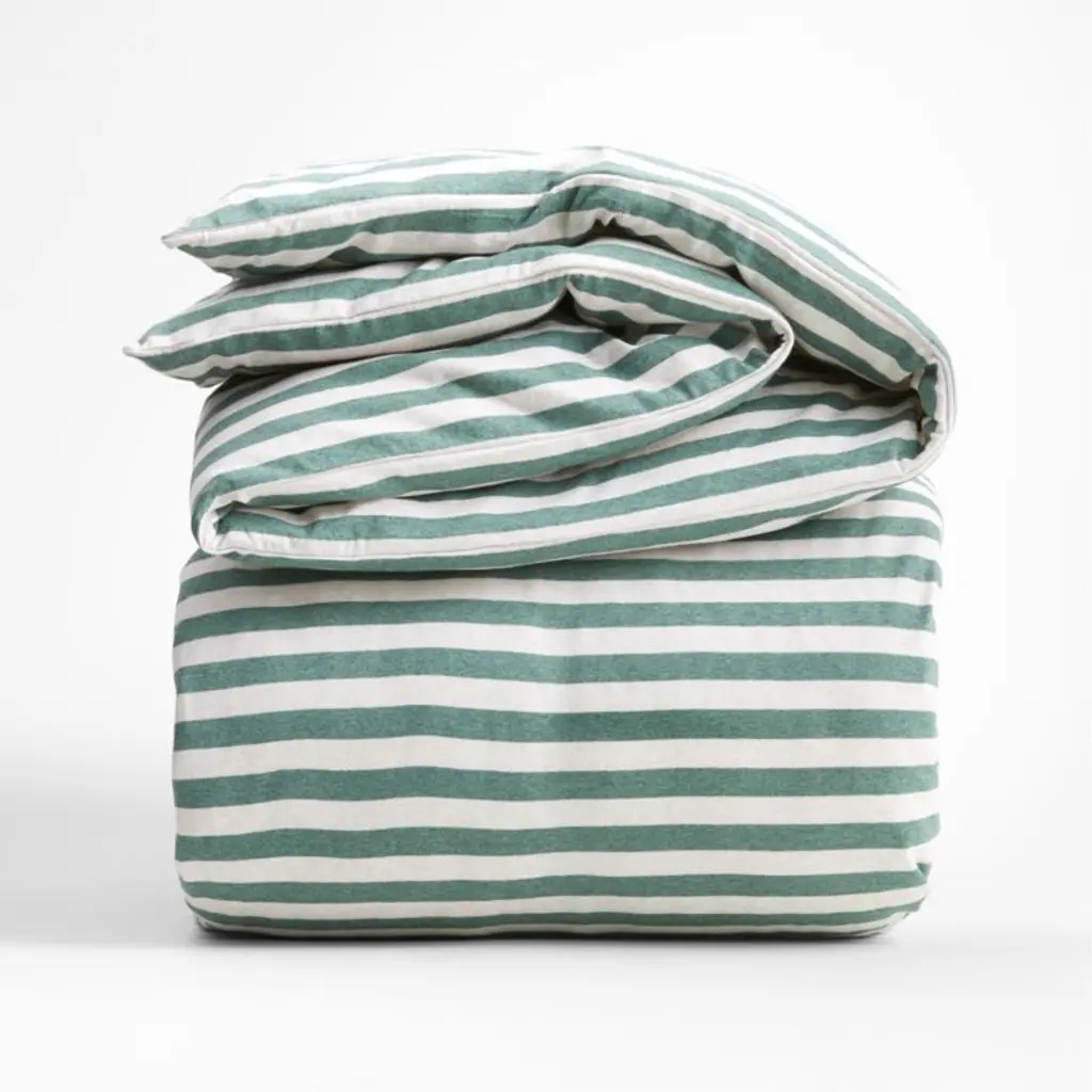 Comfy Tee Green Stripe Organic Cotton Jersey Kids Twin Duvet Cover