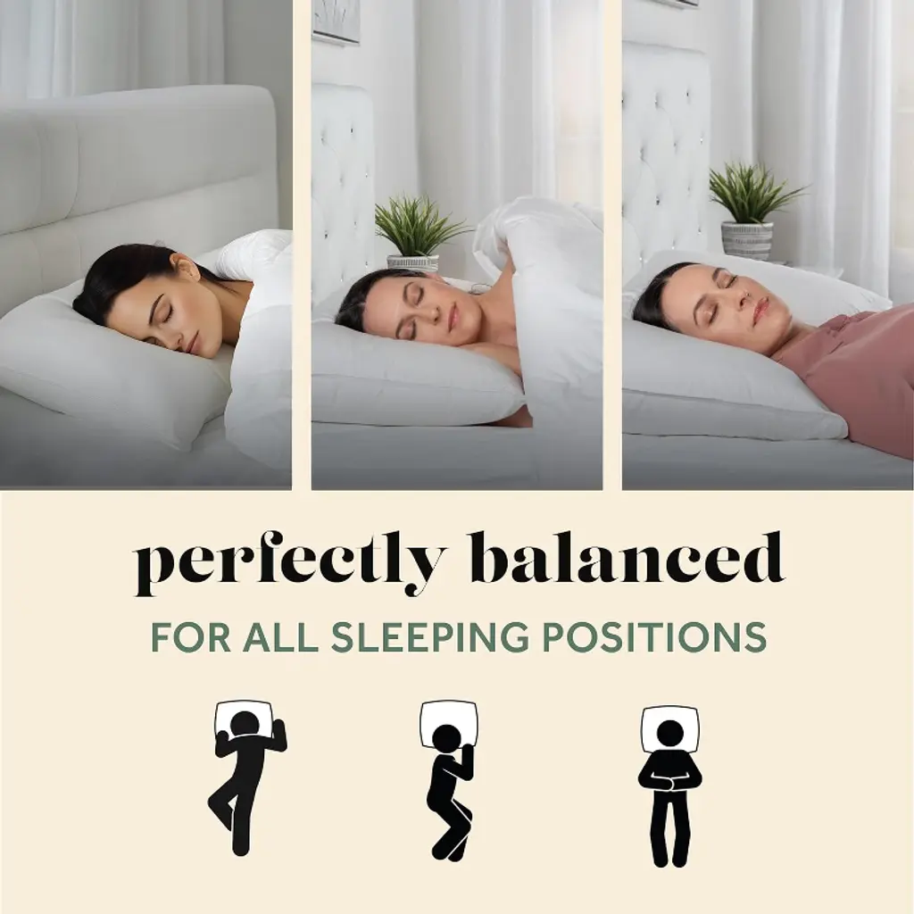 The ComfyDream Pillow by ComfyDown is designed to deliver balanced support and comfort for restful sleep. Filled with a 50/50 blend of white goose down and feathers, this medium-firm pillow provides gentle cushioning for the neck and shoulders. Its 300-thread count cotton cover enhances durability, retains the fill, and adds extra breathability. Hypoallergenic and ethically sourced, this pillow accommodates back, side, and stomach sleepers. Certified for safety and proudly made in the USA, it is available in Standard, Queen, and King sizes to match your preference.