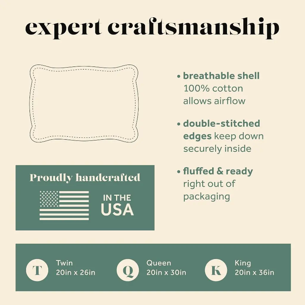 Comfydown Comfydream Medium Support Down Feather Blend Bed Pillow 100% Cotton Cover Made In Usa