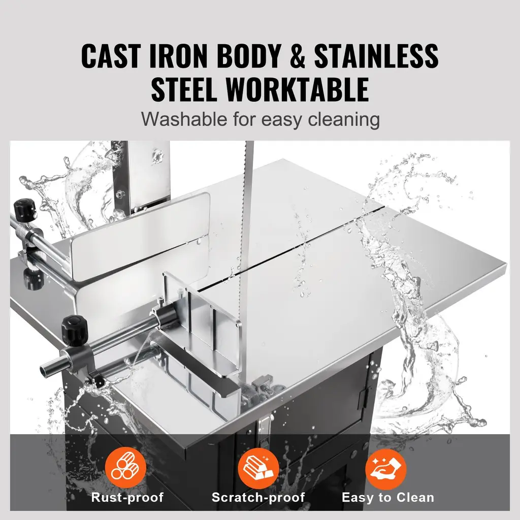 Commercial Electric Meat Bandsaw, Stainless Steel Vertical Bone Sawing Machine For Rib Pork Beef - 850w