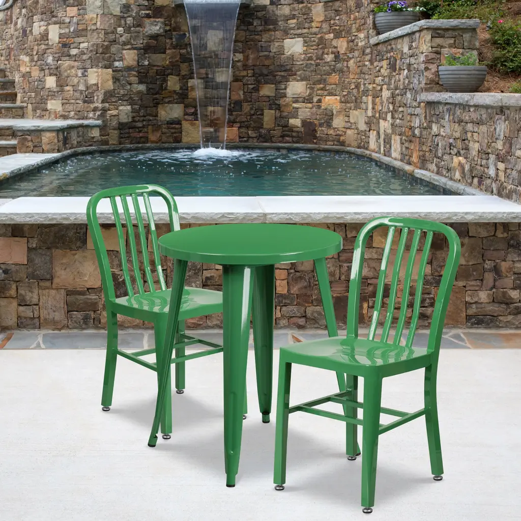 Commercial Grade 24" Round Metal Indoor-Outdoor Table Set With 2 Vertical Slat Back Chairs