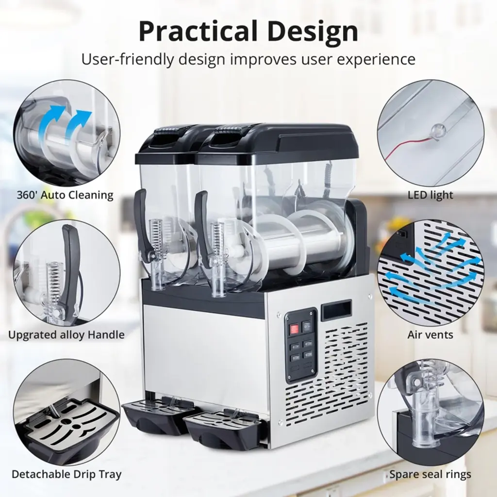 Commercial Grade Dual-tank Slushy Machine ̈C 12l¡á2 Capacity, 700w High-power Frozen Drink Maker With Quick Freeze & Auto-clean