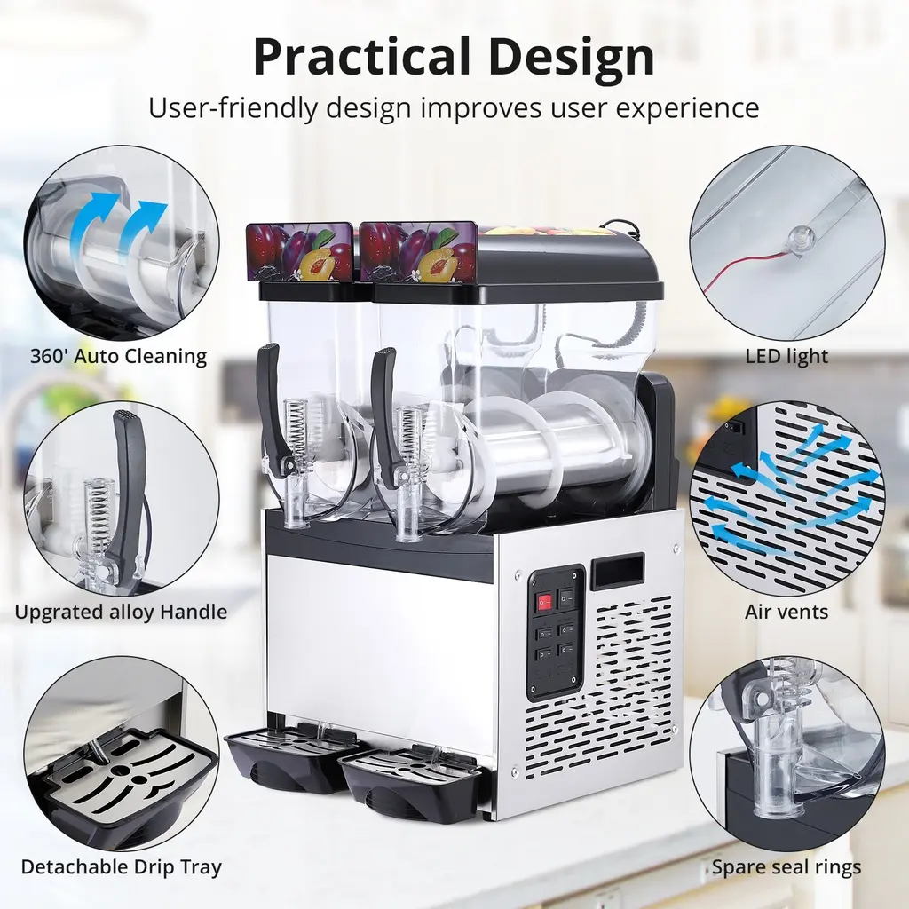 Transform your beverage offerings with our versatile Multi-functional Commercial Slushy Machine, designed to create traditional snow cones as well as soft ice cream. Ideal for enhancing experiences at restaurants, bars, and social gatherings, this durable and user-friendly machine ensures reliable operation and easy cleanup. Key Features: