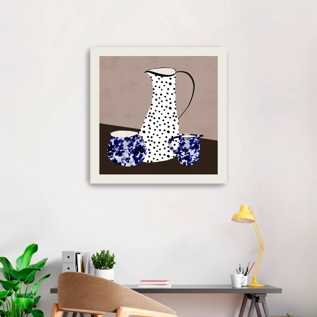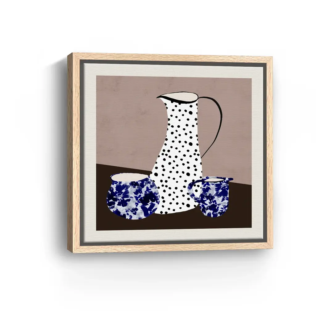 Elevate your decor with "Common Ground II" by Danushka Abeygoda, featuring beautifully crafted pots and vases in serene hues of blue against a neutral backdrop. The harmonious blend of soothing blue tones and the minimalist background creates a calming and sophisticated ambiance, perfect for any room. This versatile piece effortlessly complements both contemporary and classic interiors, making it a perfect addition to your home. Available in black frame, dark walnut frame, oak frame, or as a frameless canvas. Our Gallery Wrap Canvas Prints are proudly assembled with high quality materials in California, USA. Each piece is printed on a thick, archival grade canvas using Giclee technology. It is then hand-stretched by our experienced artisans over solid wood bars, which will not warp over time. The final product is a piece personally crafted for you to confidently display on your wall. Care and Assembly: Ensure that the location of your piece has little to no exposure to heat, sunlight, and moisture. Wipe clean, only if needed. Each piece includes a sawtooth hanger to hang on your wall horizontally.