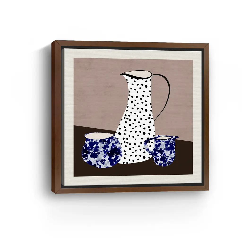 Elevate your decor with "Common Ground II" by Danushka Abeygoda, featuring beautifully crafted pots and vases in serene hues of blue against a neutral backdrop. The harmonious blend of soothing blue tones and the minimalist background creates a calming and sophisticated ambiance, perfect for any room. This versatile piece effortlessly complements both contemporary and classic interiors, making it a perfect addition to your home. Available in black frame, dark walnut frame, oak frame, or as a frameless canvas. Our Gallery Wrap Canvas Prints are proudly assembled with high quality materials in California, USA. Each piece is printed on a thick, archival grade canvas using Giclee technology. It is then hand-stretched by our experienced artisans over solid wood bars, which will not warp over time. The final product is a piece personally crafted for you to confidently display on your wall. Care and Assembly: Ensure that the location of your piece has little to no exposure to heat, sunlight, and moisture. Wipe clean, only if needed. Each piece includes a sawtooth hanger to hang on your wall horizontally.