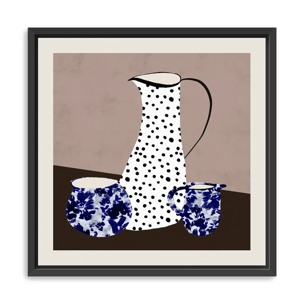 Elevate your decor with "Common Ground II" by Danushka Abeygoda, featuring beautifully crafted pots and vases in serene hues of blue against a neutral backdrop. The harmonious blend of soothing blue tones and the minimalist background creates a calming and sophisticated ambiance, perfect for any room. This versatile piece effortlessly complements both contemporary and classic interiors, making it a perfect addition to your home. Available in black frame, dark walnut frame, oak frame, or as a frameless canvas. Our Gallery Wrap Canvas Prints are proudly assembled with high quality materials in California, USA. Each piece is printed on a thick, archival grade canvas using Giclee technology. It is then hand-stretched by our experienced artisans over solid wood bars, which will not warp over time. The final product is a piece personally crafted for you to confidently display on your wall. Care and Assembly: Ensure that the location of your piece has little to no exposure to heat, sunlight, and moisture. Wipe clean, only if needed. Each piece includes a sawtooth hanger to hang on your wall horizontally.