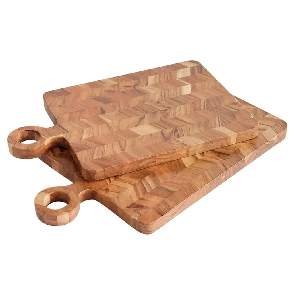 Communal Table Set Of 3 Serving Boards With Iron Handle Acacia Wood/iron