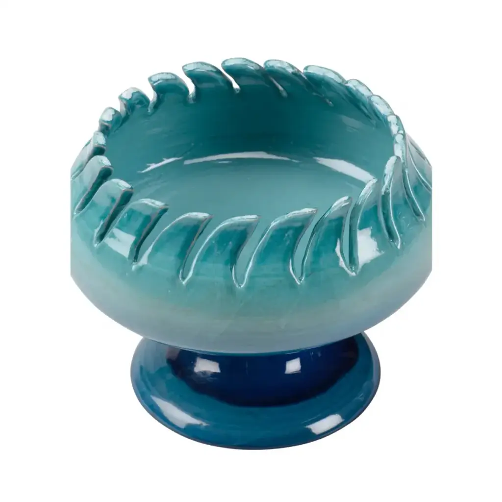 Hand sculpted by master artisans in Italy, this stunning ceramic compote features a blue ombre glaze that is reminiscent of the waves off the Italian coast.