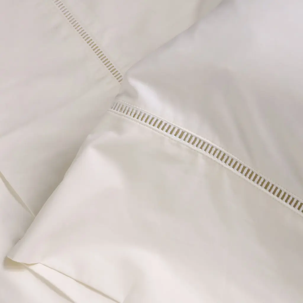 Elevate your bed with the Como Ladder Stitch bedskirt which features a sophisticated ladder stitch detail along the skirt. 1.5” flange. 100% cotton sateen.