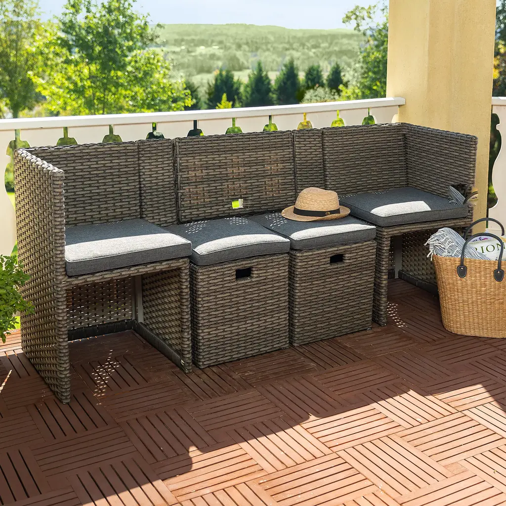 Compact Modular Wicker Balcony Seating Set With Multiple Configurations