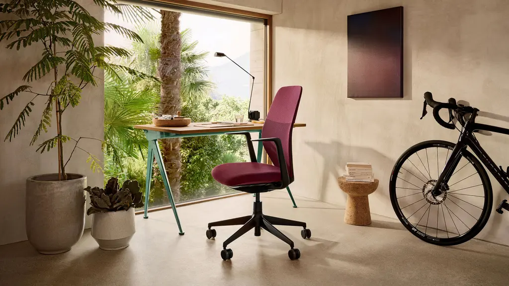 The slender, elegantly splayed legs of Compas Direction, designed by Jean Prouvé in 1953, call to mind the hinged arms of a compass – 'le compas' in French. With its compact dimensions, the desk is ideal for the contemporary home office.