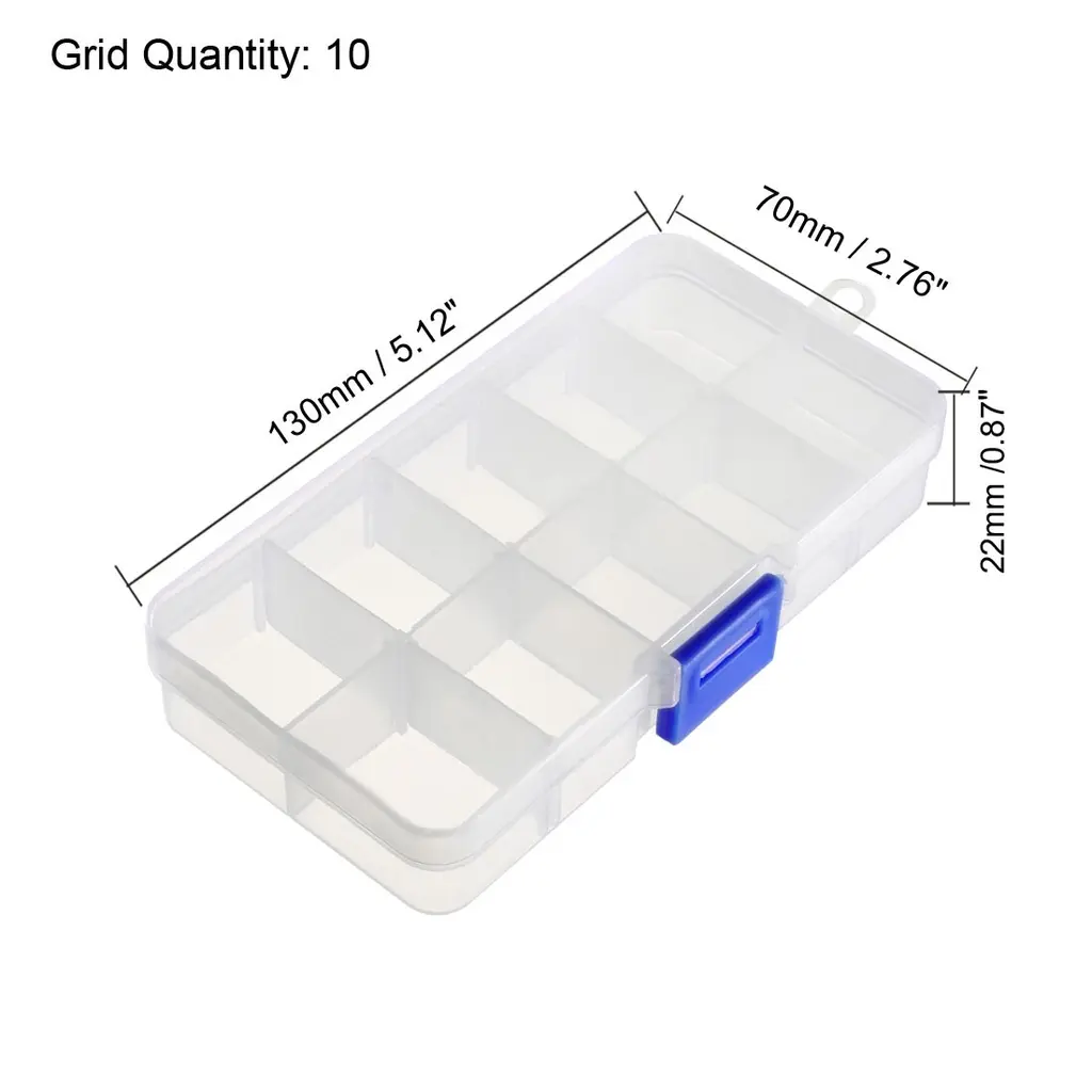 Component Storage Box - Pp Adjustable 10 Grids Clear White 130x70x22mm - 10 Grids, 130x70x22mm - Clear