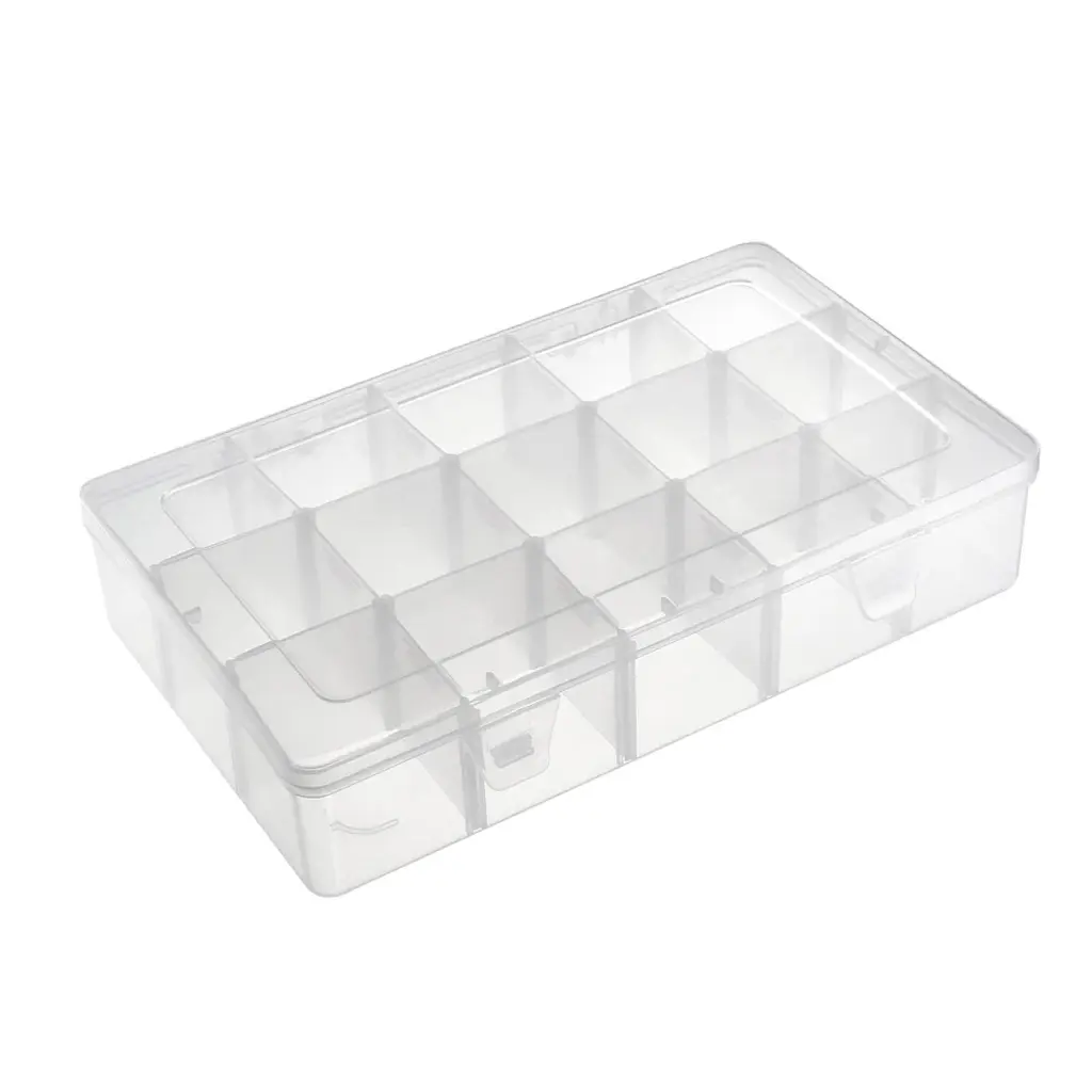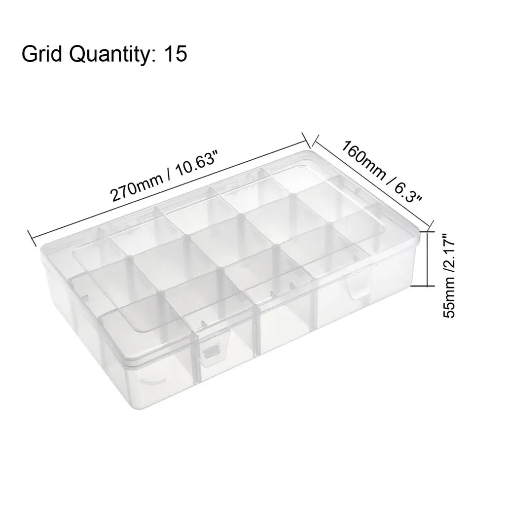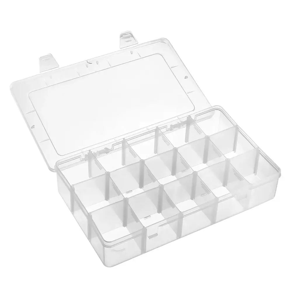 Component Storage Box Pp Adjustable 15 Grids Clear White 270x160x55mm - 15 Grids, 270x160x55mm - Clear