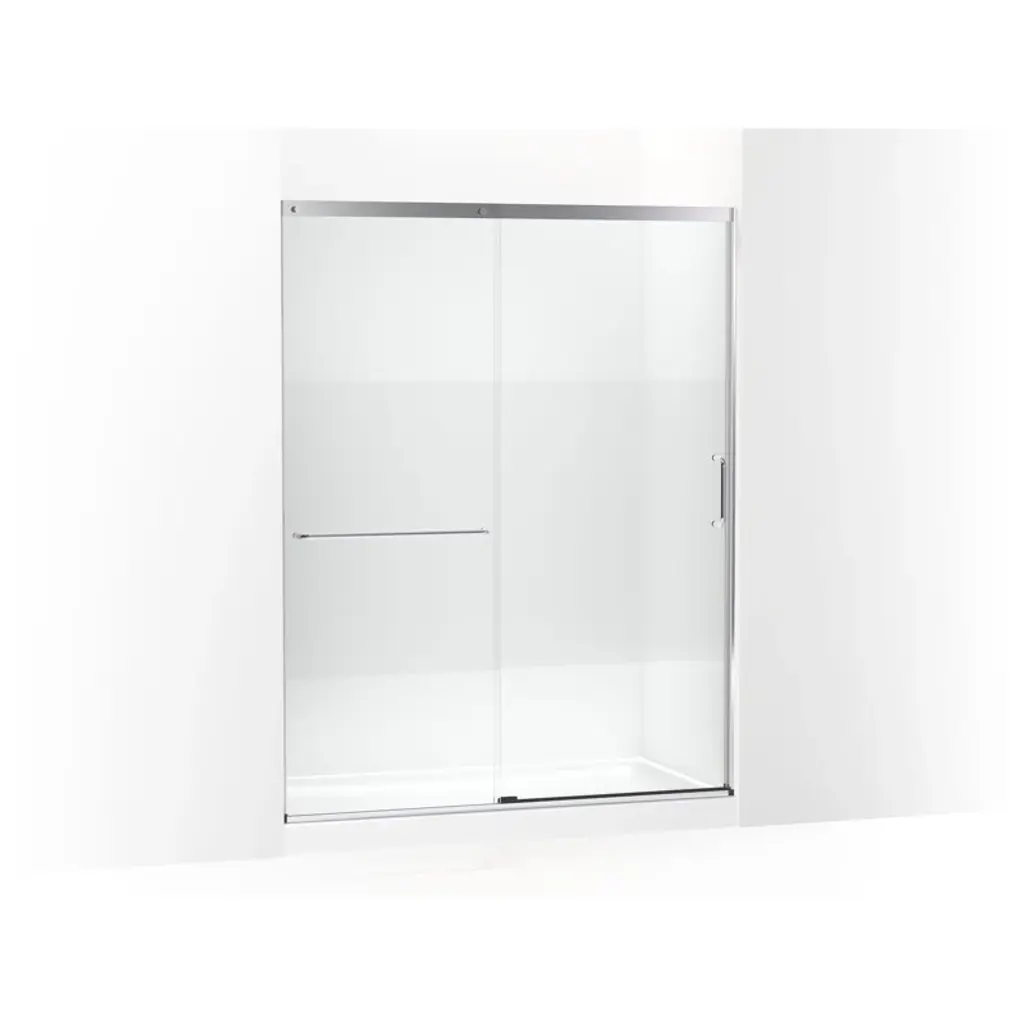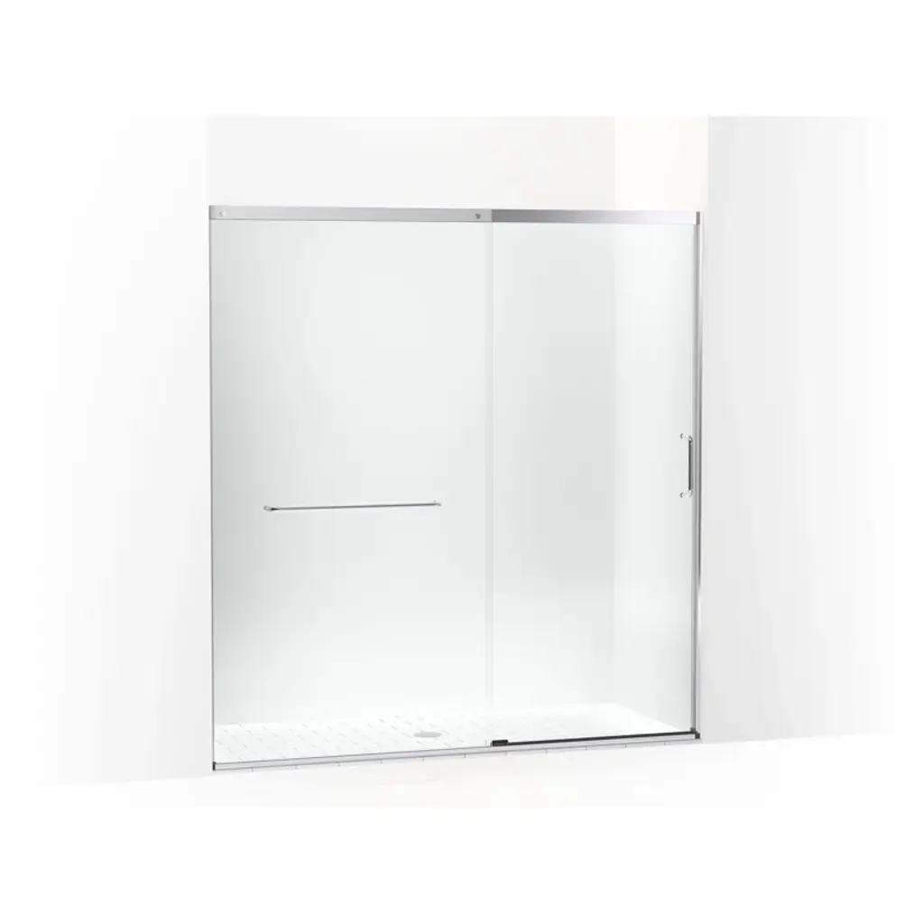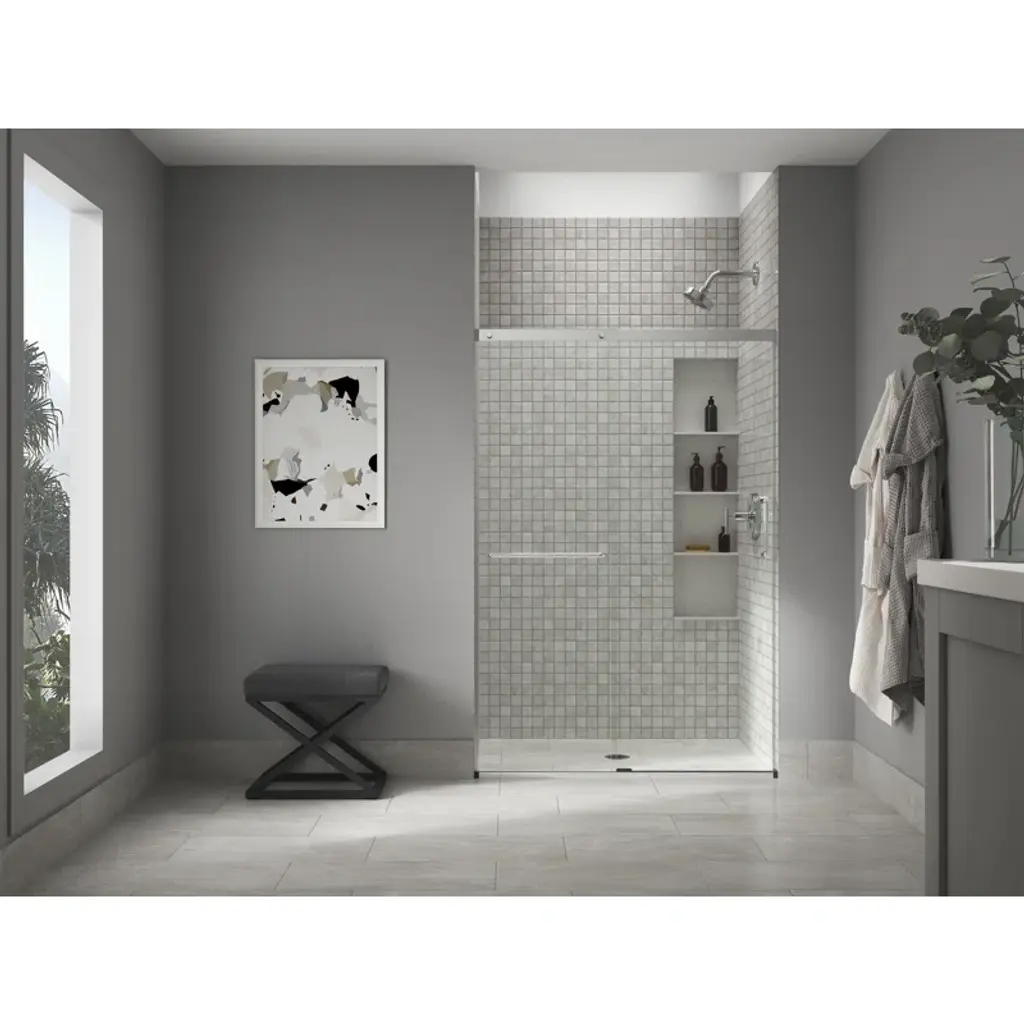 Add the final touch to your showering space with the luxurious composed frameless pivot shower door. This contemporary design includes an innovative bracket that secures the fixed panel in place and gives a sturdy feel while also being unobtrusive to the showering space. This 3/8-in thick crystal clear shower door includes a magnetic seal on the moving panel to securely close the door for exceptional water containment. Beautiful back-to-back vertical door pulls for easy entry and exit complete the modern minimalist look. Simple installation includes 3/8-in out-of-plumb adjustability on both the fixed and moving glass panels. The frameless pivot shower door naturally compliments composed faucets and accessories.