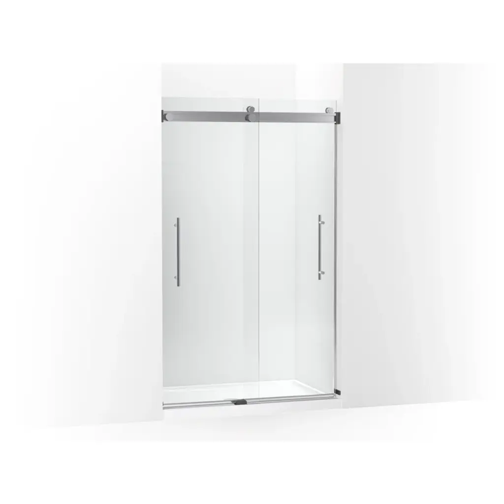 Components 58-In58-3/4-In W X 71-1/2-In H Frameless Pivot Shower Door With 3/8-In Crystal Clear Glass And Back-To-Back Vertical Door Pulls