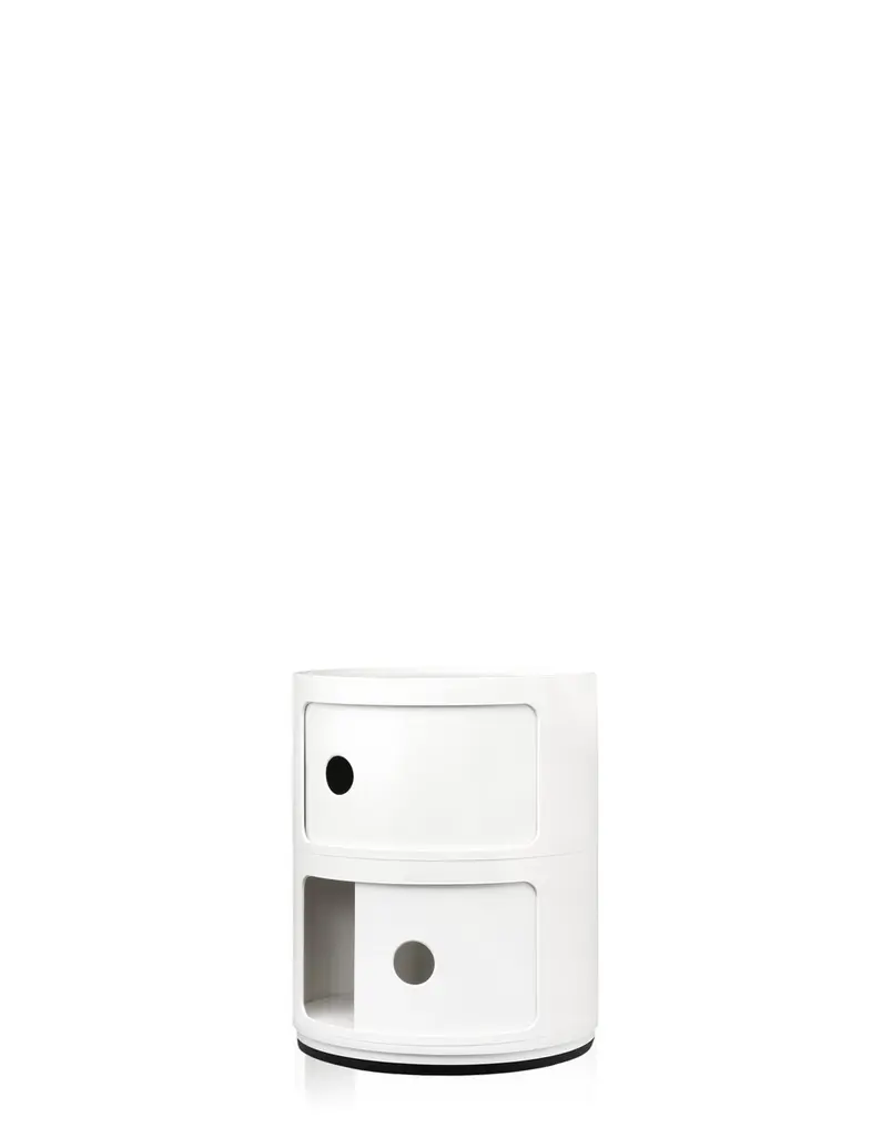 The modular elements were designed to meet different needs and to fit perfectly into every room in the home. Componibili first appeared in 1967 and have become a timeless furnishing classic. Today’s Componibili are 32 cm in diameter. Thanks to fixed compositions of two, three or four elements, these products are both functional and practical in all environments. This model comes in six glossy finishes and one matte silver finish.