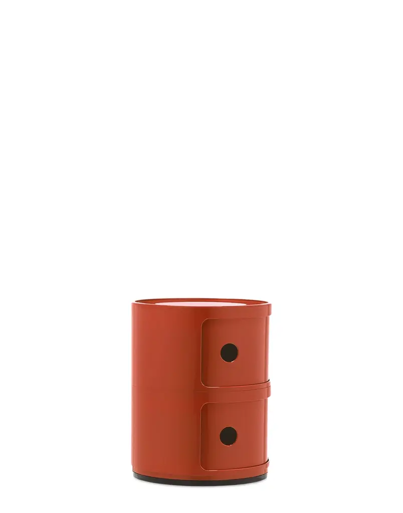 The modular elements were designed to meet different needs and to fit perfectly into every room in the home. Componibili first appeared in 1967 and have become a timeless furnishing classic. Today’s Componibili are 32 cm in diameter. Thanks to fixed compositions of two, three or four elements, these products are both functional and practical in all environments. This model comes in six glossy finishes and one matte silver finish.