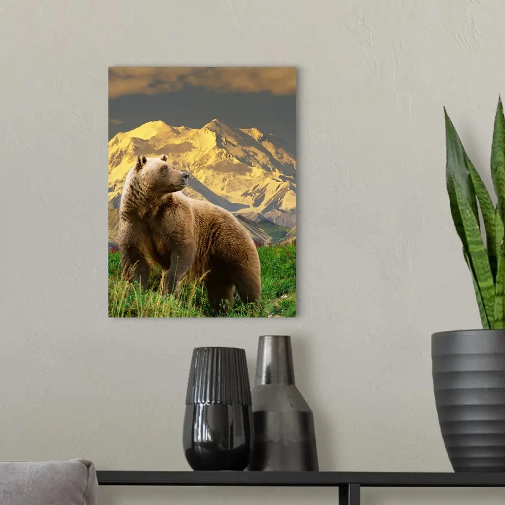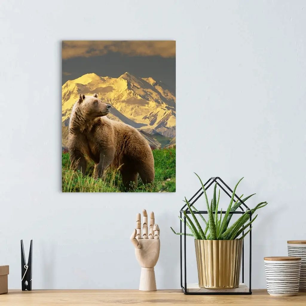 COMPOSITE Grizzly stands on tundra with Mt. Mckinley in the background, Alaska COMPOSITE wall art for home and office decor. Discover canvas art prints, photos, mural, big canvas art and framed wall art in GreatBigCanvas.com's varied collections.