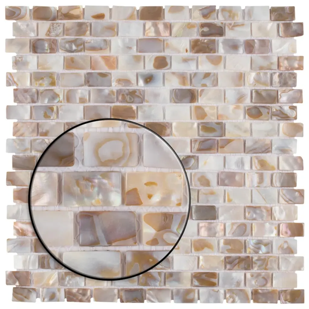 Capturing the lustrous beauty of natural seashells, our Seashell Natural Seashell Mosaic Wall Tile emulates seaside-inspired tranquility. Featuring an exquisite blend of beautifully iridescent rectangle-shaped chips that are constructed of natural seashells, this mosaic wall tile illuminates any space. Soft tones infuse this tile with elegance and natural charm. Smooth, glossy subway tiles are precisely arranged on an interlocking mesh to create a seamless installation. This minimalistic geometric porcelain mosaic is unique yet simplistic enough to integrate into any design, ranging from traditional-style renovations to modern home projects. Its impervious and frost-resistant features make this mosaic an ideal choice for both indoor and outdoor wall installations including, kitchen backsplashes, bathroom showers, and fireplace facades. Tile is the better choice for your space. This tile is made from natural ingredients, making it a healthy choice as it is free from allergens, VOCs, formaldehyde, and PVC.