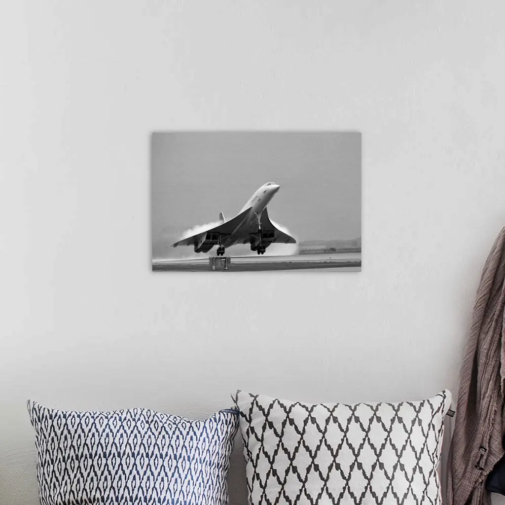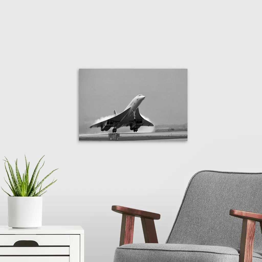 The Concorde supersonic transport lifts off the runway at JFK International Airport. Its first test flights stayed well below the threshold of acceptable noise levels.