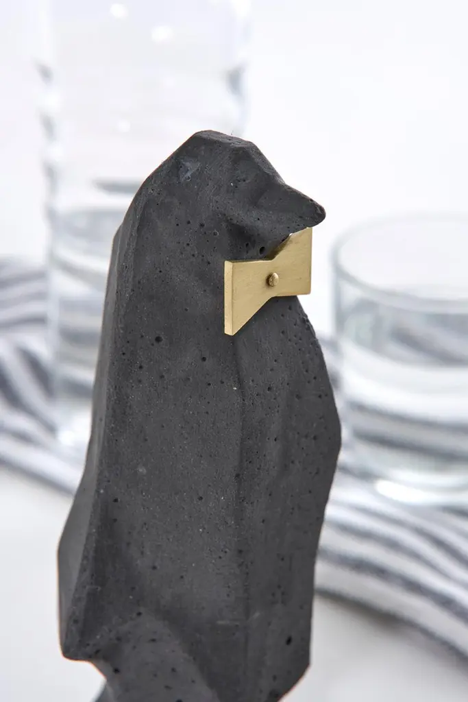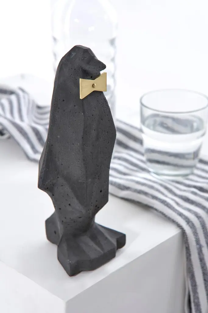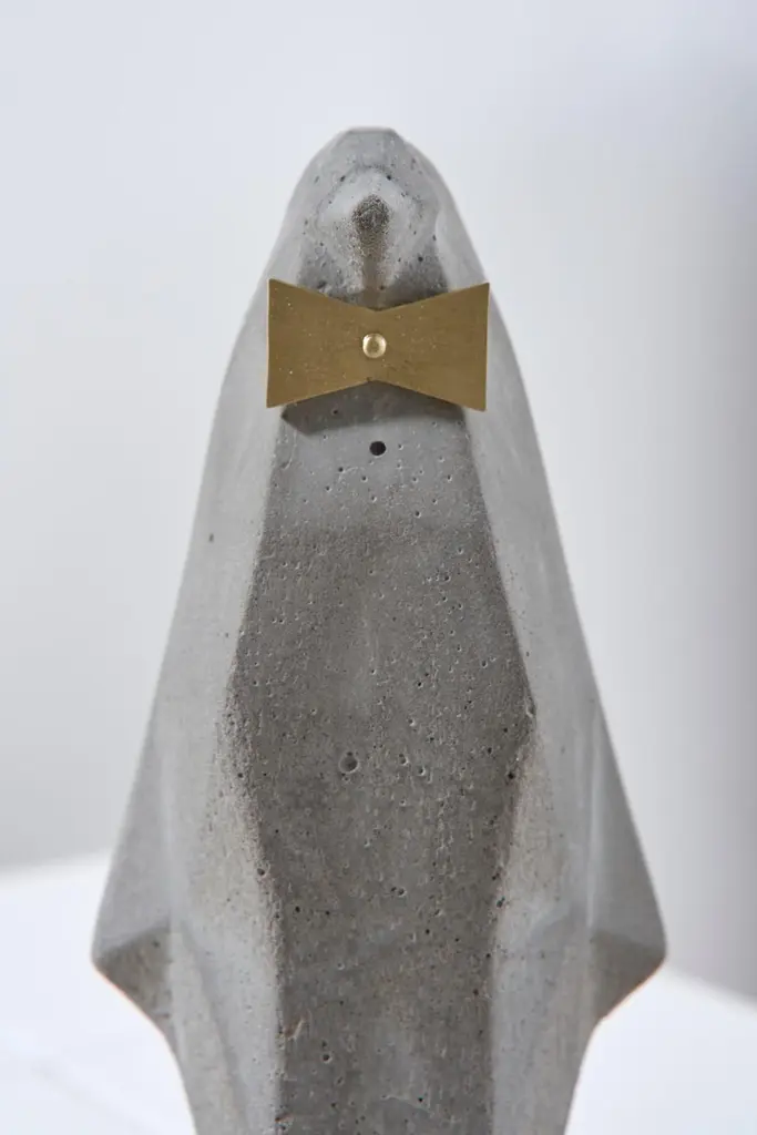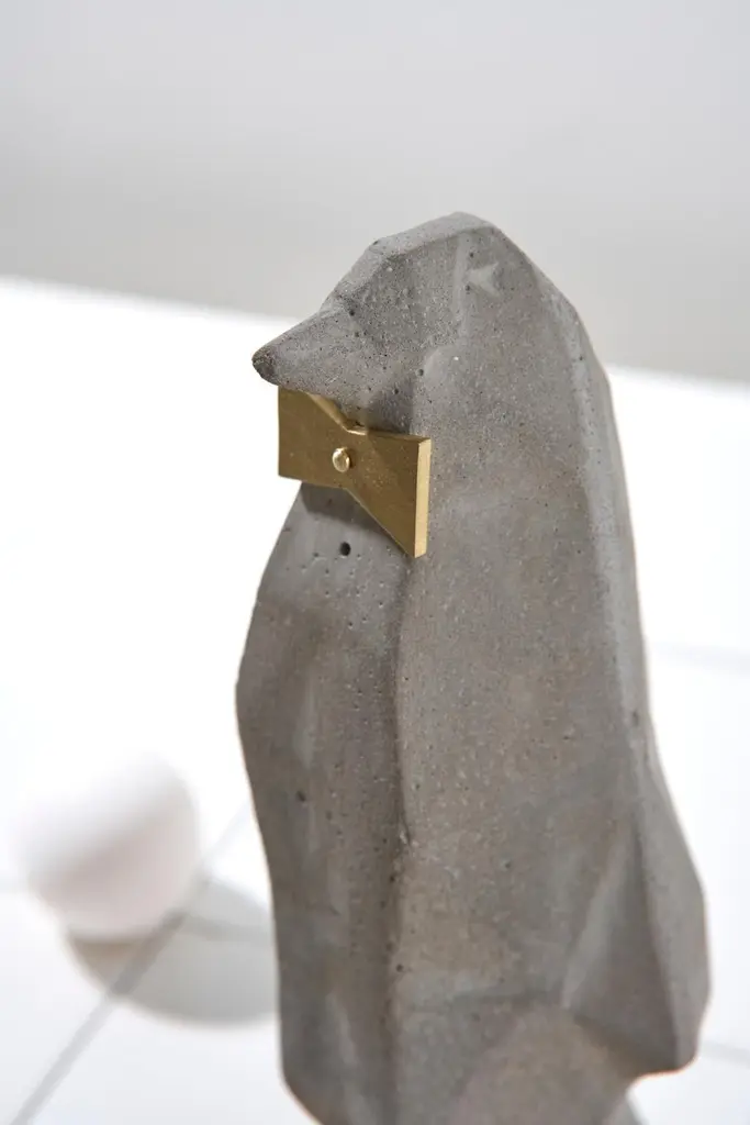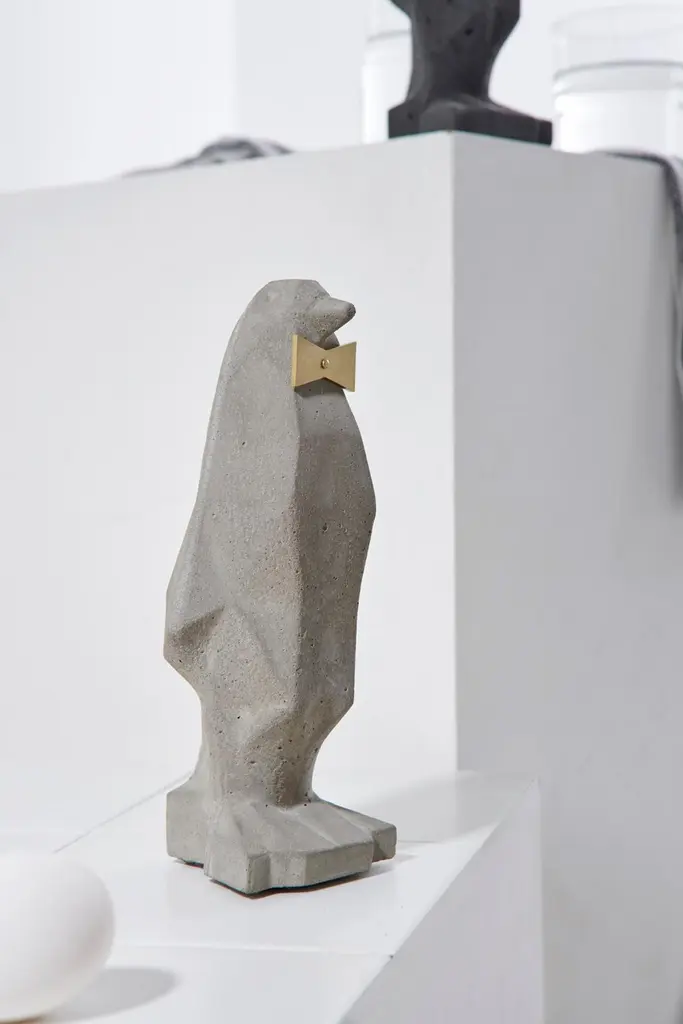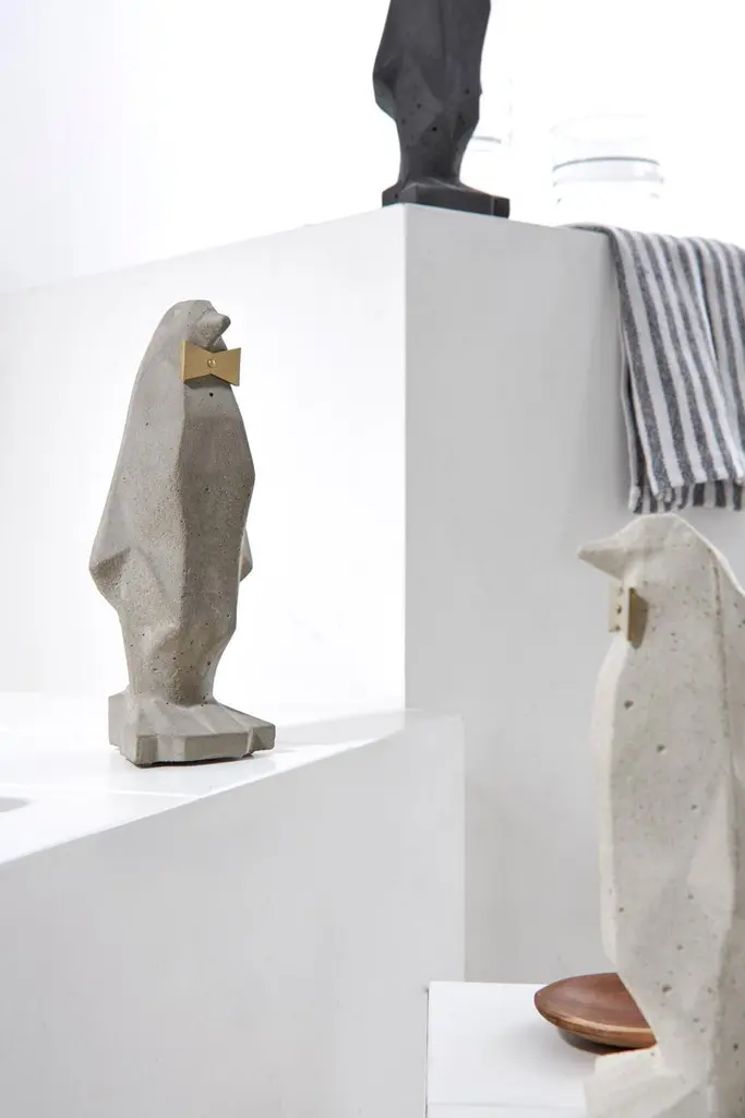 LÍGIA ANTUNES E ANA RESENDE [COBALTO] FOR ILUDIThe union of unconventional gazes is chemical. From the particles of experimentation, the attraction between positive poles results in unique pieces, inspired by a solid, concrete base.As identity, the non-place. Transitive direct objects that can (and should) be reinvented, transformed, incorporated, or simply admired as pieces of art. The proposal comes through absorption, not a decanted reality.A partnership that is molded by the plasticity of concrete, geometry and a refined minimalist aesthetic. Deconstruct the urban and rebuild it under the sign of the unusual.PINGUIM CONCRETOThe "concrete penguin" carries, even without flying, the elegance and refinement of the affectionate relationships. Memories gain space and geometric traces go around the figure. Style and personality in an art-adornment that echoes beautiful memories._Material: Concrete and Brass_Price of set_The concrete may suffer changes to texture and tone, small imperfections are caracteristic of the material and do not constitute damage to the product.