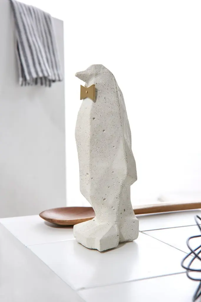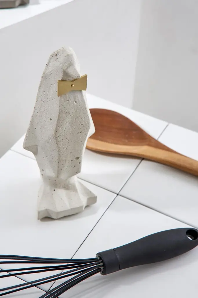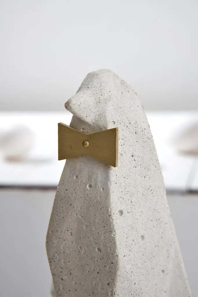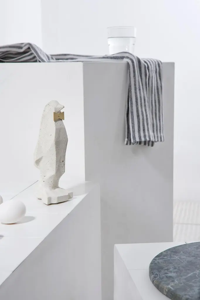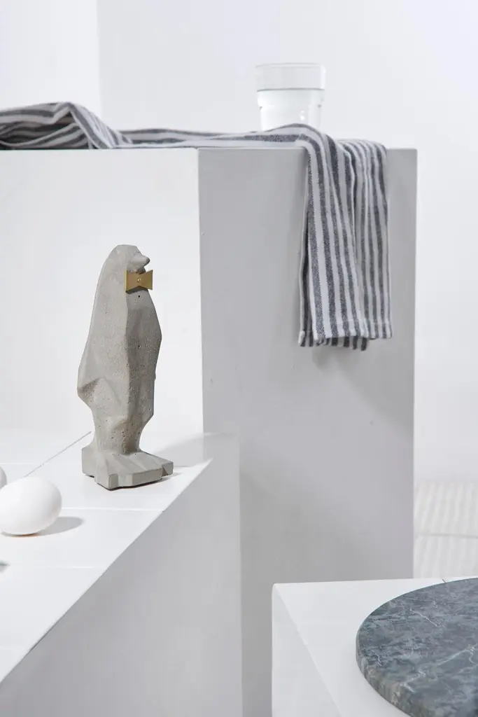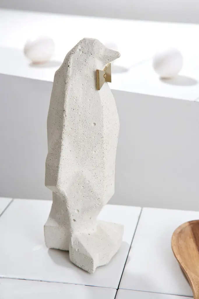 LÍGIA ANTUNES E ANA RESENDE [COBALTO] FOR ILUDIThe union of unconventional gazes is chemical. From the particles of experimentation, the attraction between positive poles results in unique pieces, inspired by a solid, concrete base.As identity, the non-place. Transitive direct objects that can (and should) be reinvented, transformed, incorporated, or simply admired as pieces of art. The proposal comes through absorption, not a decanted reality.A partnership that is molded by the plasticity of concrete, geometry and a refined minimalist aesthetic. Deconstruct the urban and rebuild it under the sign of the unusual.PINGUIM CONCRETOThe "concrete penguin" carries, even without flying, the elegance and refinement of the affectionate relationships. Memories gain space and geometric traces go around the figure. Style and personality in an art-adornment that echoes beautiful memories._Material: Concrete and Brass_Price of set_The concrete may suffer changes to texture and tone, small imperfections are caracteristic of the material and do not constitute damage to the product.