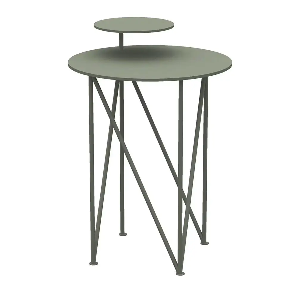 Marked by a graceful, iron-lacquered frame in a relaxing sage-green shade, this refined four-tier serving stand will impeccably complement contemporary tables to stimulate conviviality. The four round tops are placed at different heights and sustained by thin matching arms that meet at the base creating a freestanding design. Splendid in its minimalism, almost phytomorphic-inspired, the design is offered in other colors upon request to the Concierge.