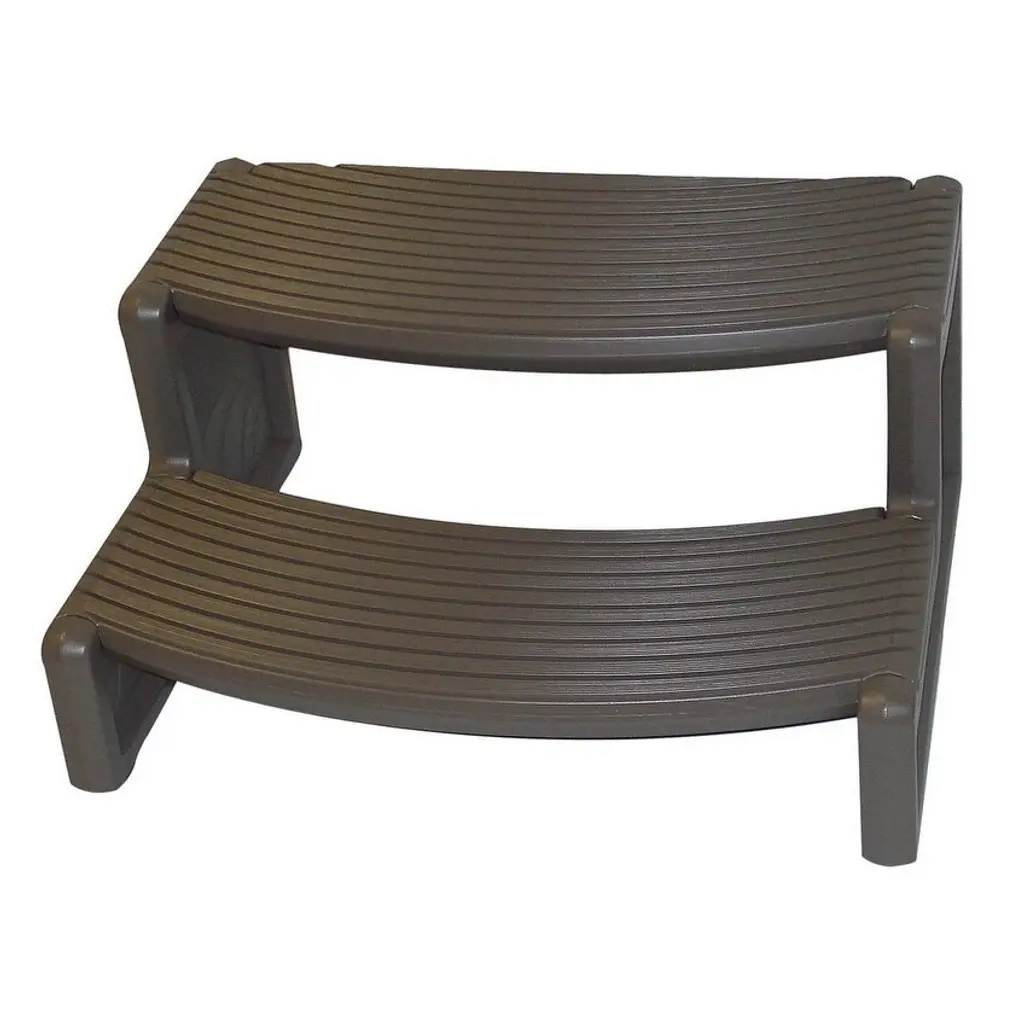 Step into your hot tub or reach for items with ease and safety in mind using the Confer Plastics Handi-Step. This hot tub and spa step from Confer Plastics was created with durability, convenience, and versatility in mind. Simply snap the pieces together, and you're ready to go. Absolutely no hardware is needed! The hot tub steps are suitable for use with straight and curved spas, so no matter which type of spa you have, you have a handy companion to help you enter and exit. The 2-step design features 28.5-inch wide and 23-inch deep stairs, great for providing stability when entering and exiting. Plus, the extremely durable blow-molded plastic construction supports up to 300 pounds. These spa steps can be used for so much more, too! Use the steps in your garage or home, take them along on your camping trip for RV stairs, or use them outside for porch steps. The possibilities are endless with the lightweight, portable design. With the neutral color, you can rest assured the step stool will coordinate well with any color scheme so you don't have to re-design your environment or decor theme. When you need to get a leg up to enjoy your hot tub, or need a little more reach when you're organizing your garage, trust the Confer Multi-Purpose Spa Handi-Step to provide an easy, safe, and versatile solution for all your needs. Spa stairs suitable for both straight and curved spas, offering versatility and convenience for your hot tub needs Can also be used as a multi-purpose stool for outdoor steps, home, garage, and camping Snap-together design allows you to quickly and easily assemble the outdoor stairs; Absolutely no hardware is needed Designed to be a compact, portable solution ideal for patio or deck steps, outdoor steps for your RV, and even as a kitchen step stool Blow-molded plastic construction is extremely durable with a weight capacity of 300 pounds 28.5-inch wide and 23-inch deep steps allow for easy entry and exit from your outside spa Neutral color coordinates with almost any spa and outdoor color scheme Weight capacity: 300 pounds Material: Plastic Color: Portobello Dimensions (D x W x H): 23 x 28.5 x 14 inches Manufacturer warranty: 5-year warranty against manufacturing and workmanship defects