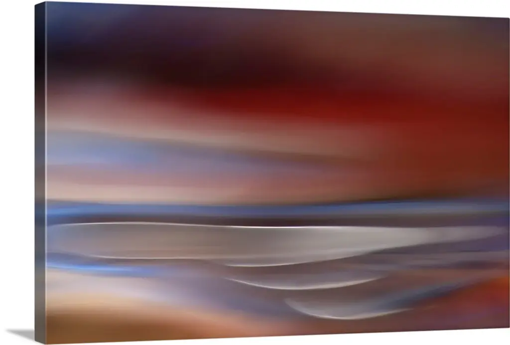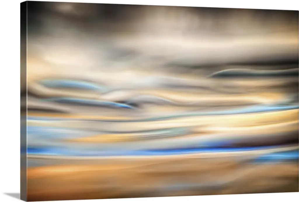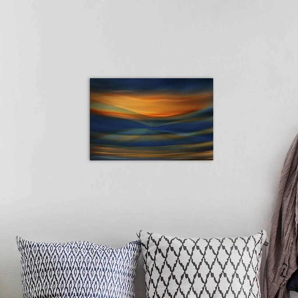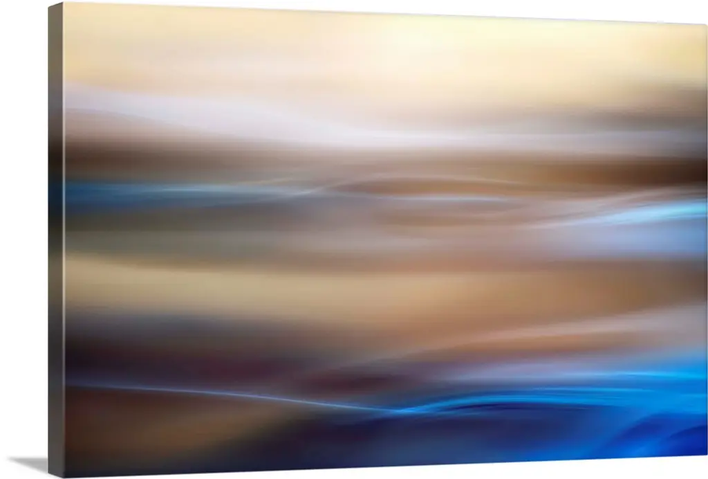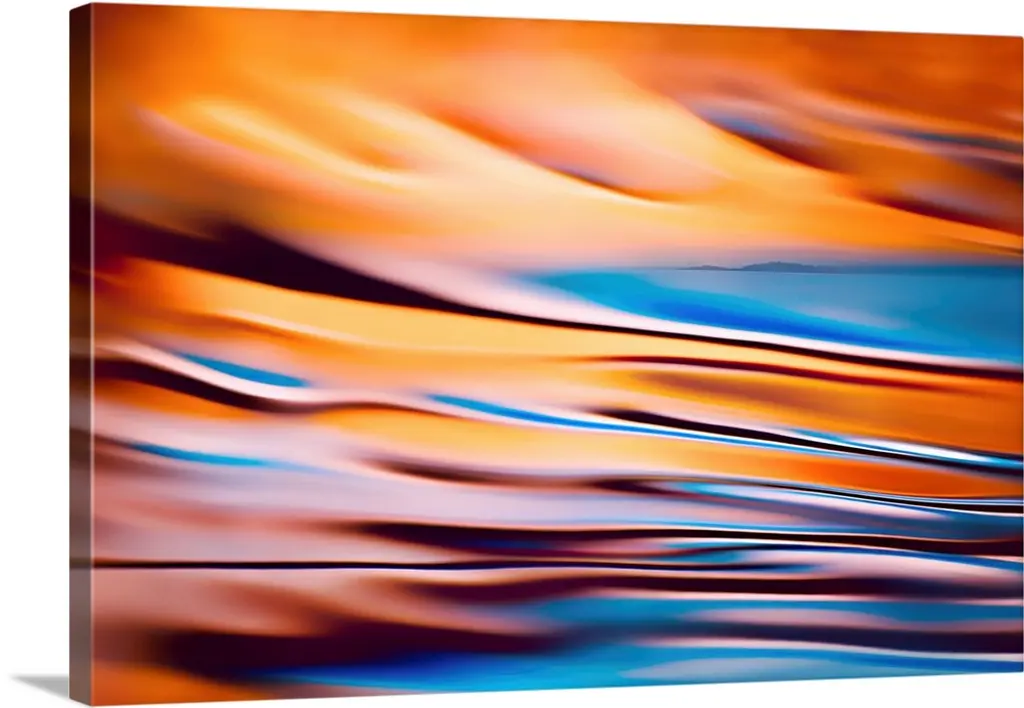 Abstract photograph of blurred and blended colors and flowing lines in shades of orange and blue.