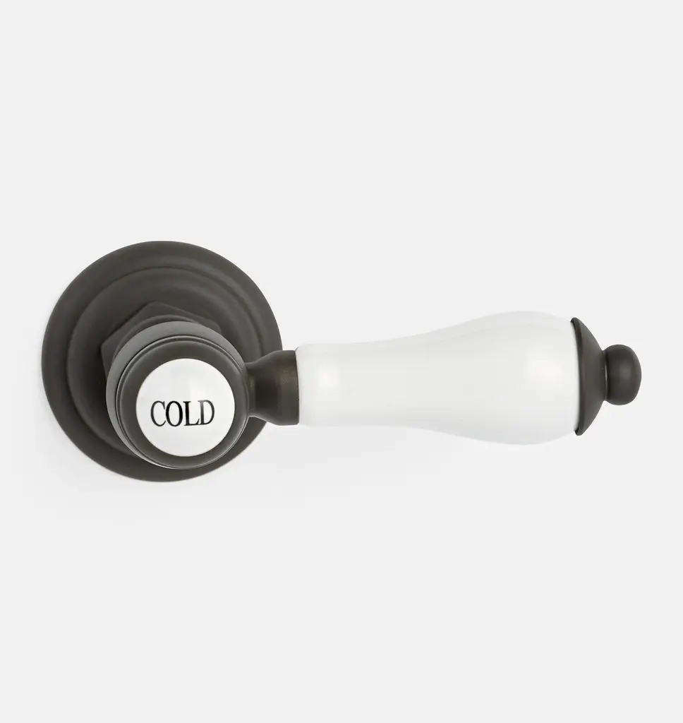 Inspired by traditional Victorian silhouettes and crafted in solid brass, Connor features an elegantly curved spout and handles with unique porcelain detailing—a classic addition to any bathroom or powder room.