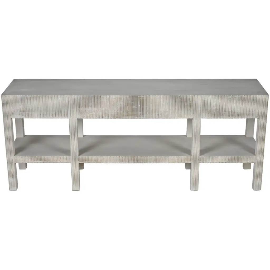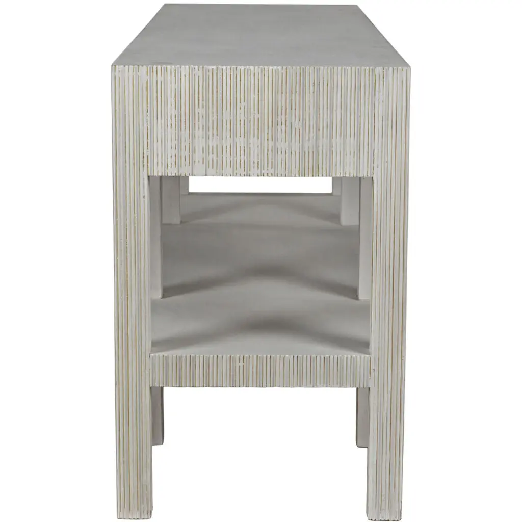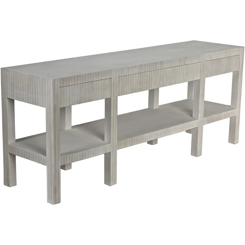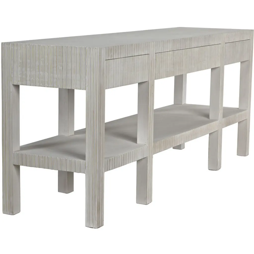 Elegance interpreted, this solid mahogany console is distinguished by its clean lines, expert handcraftsmanship, and the white wash finish that enhances the natural grain of its hardwood.