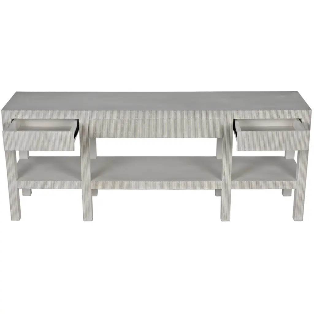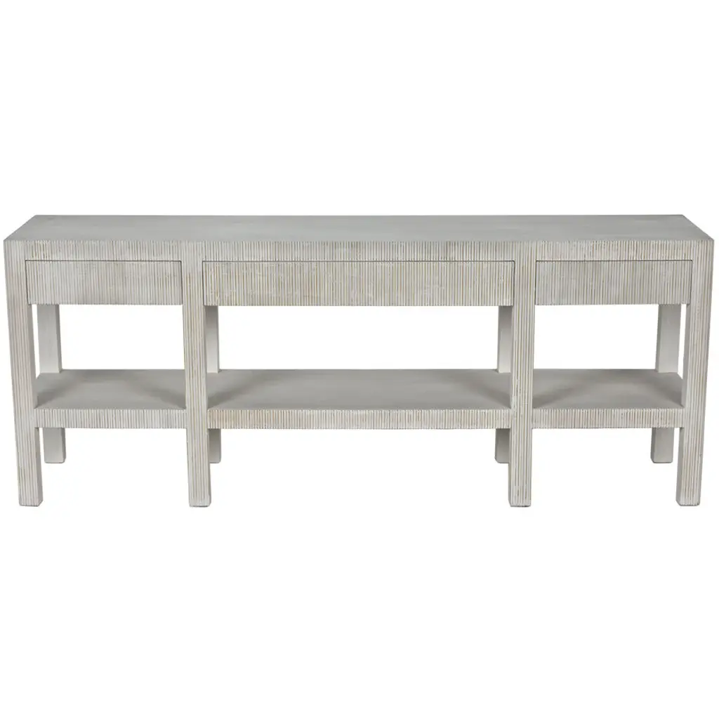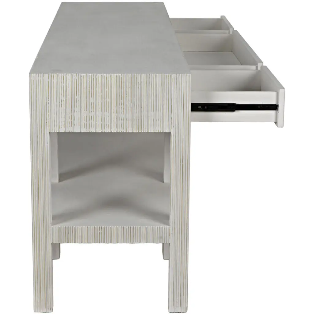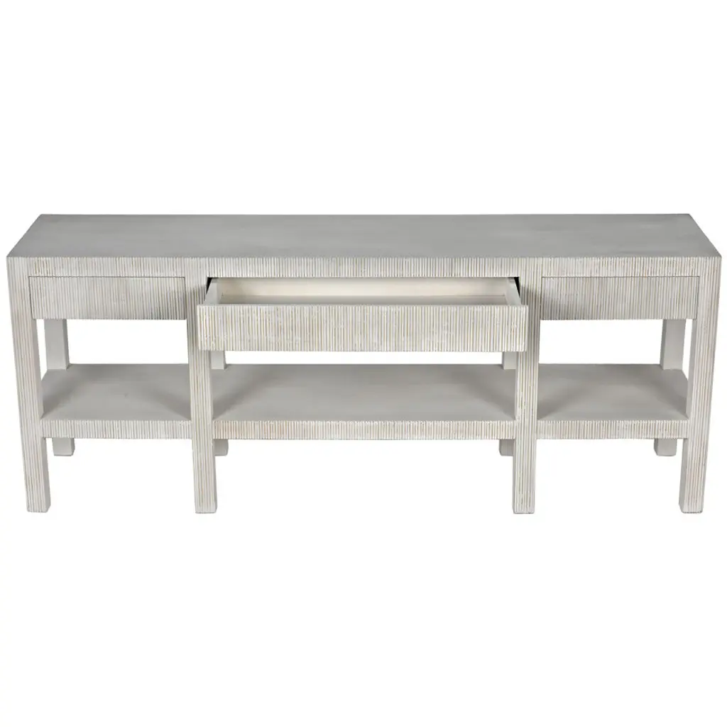 Elegance interpreted, this solid mahogany console is distinguished by its clean lines, expert handcraftsmanship, and the white wash finish that enhances the natural grain of its hardwood.