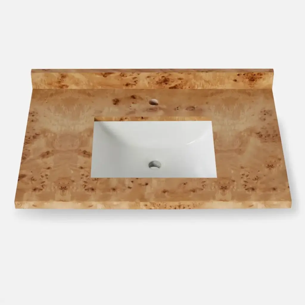 Base: Our faux raffia Conrad furniture collection—a Made Goods favorite—has expanded to include freestanding and floating bathroom vanities with the same expertly crafted cabinetry and meticulous attention to detail. With proportions that are both modern and refined, it lends quiet grandeur to any powder room or bath. Each piece features fully functional soft-close drawers designed with cutouts to accommodate plumbing and generous depth to store all the essentials—toiletries, tissue, and more. Sink: Available in both powder room and standard sink sizes, our rectangular undermount basins are crafted of premium-quality porcelain.