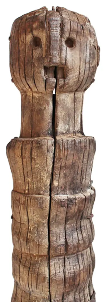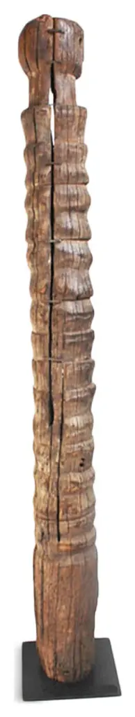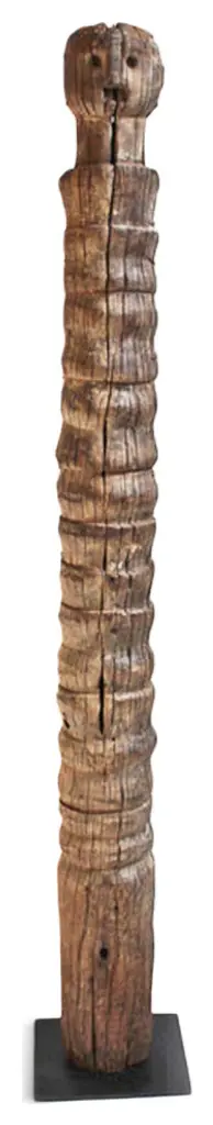 Consigned antique original carved property post from Southern Sudan. Early notation found these abstract pole-like figures marking the gravesites of honored male elite warriors and chiefs. Erected in to the ground during ceremonies, these figures are also said to protect against sorcerer spells. Circa early 1900''s with beautiful signs of age.Condition: Great, with signs of age and useOrigin: South SudanEra: 1900''s