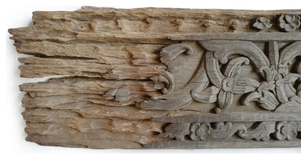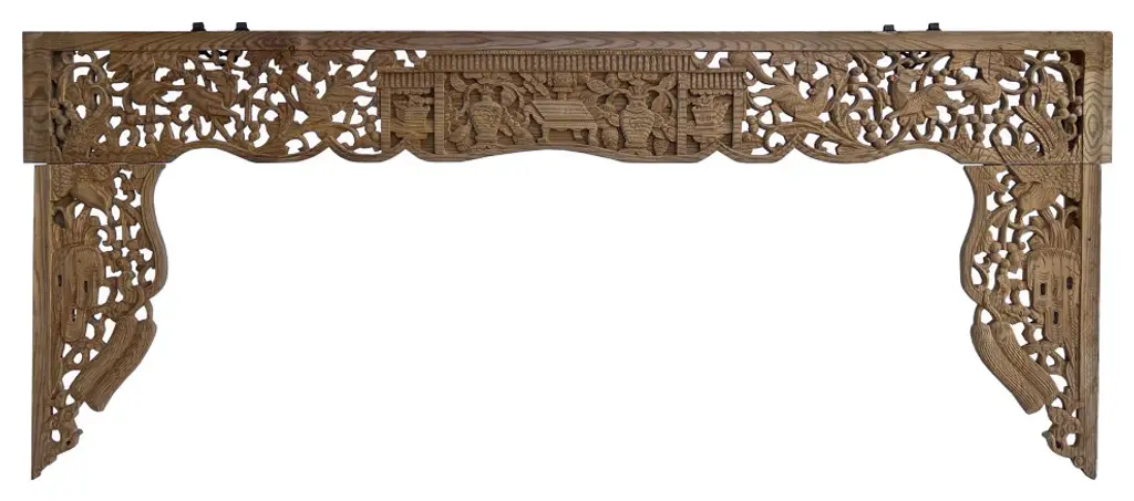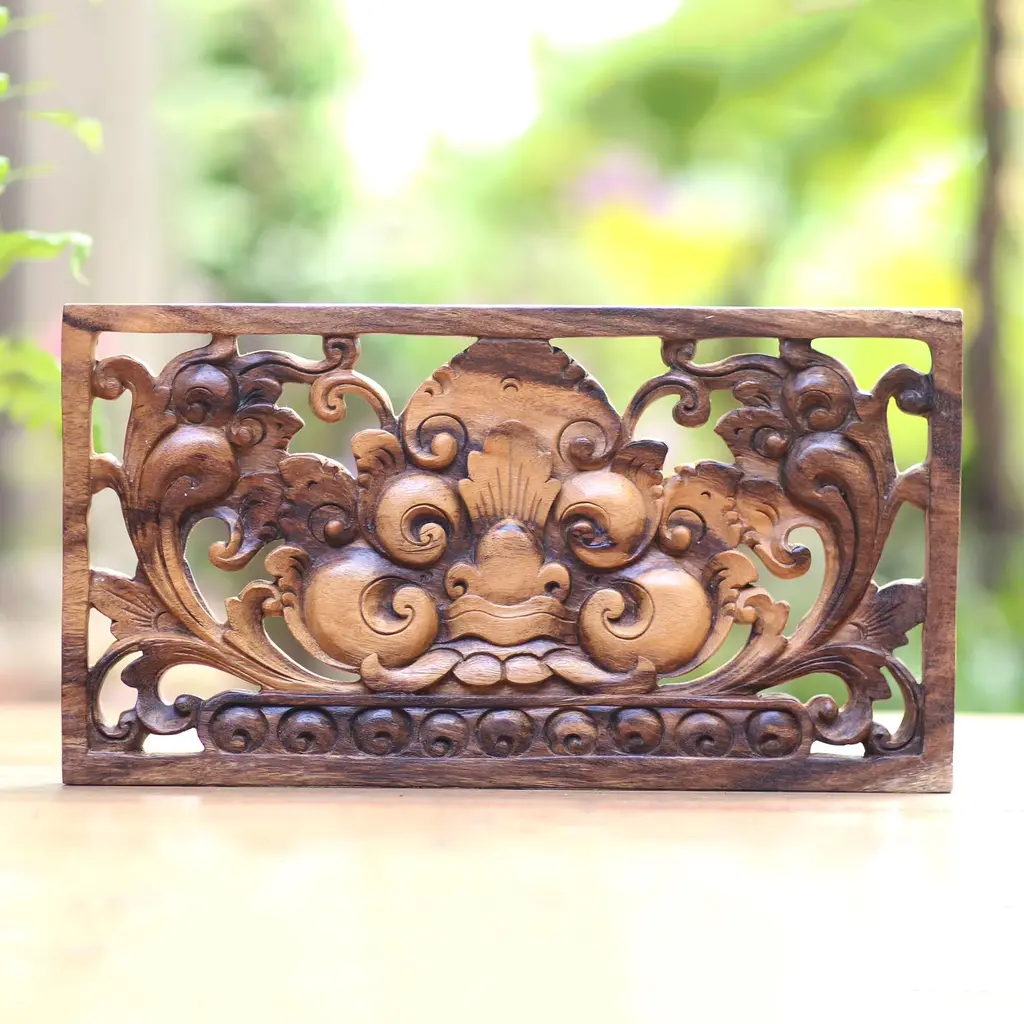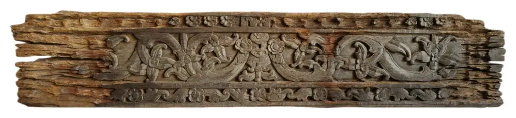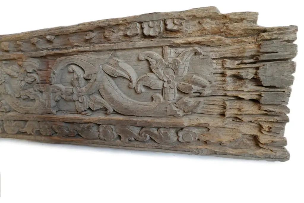 Consigned original beautiful old hand carved wood architectural fragment. Floral and botanical carved detail with rough edges.Condition: Great, with signs of age and useOrigin: Indonesia Era: Early - Mid 1900''s