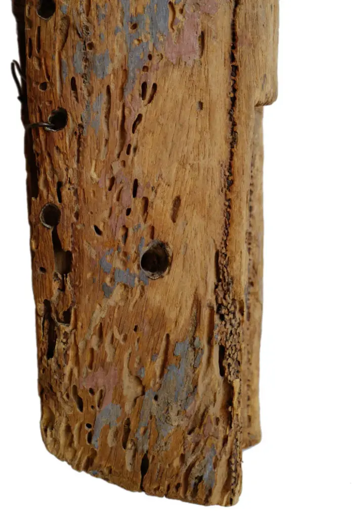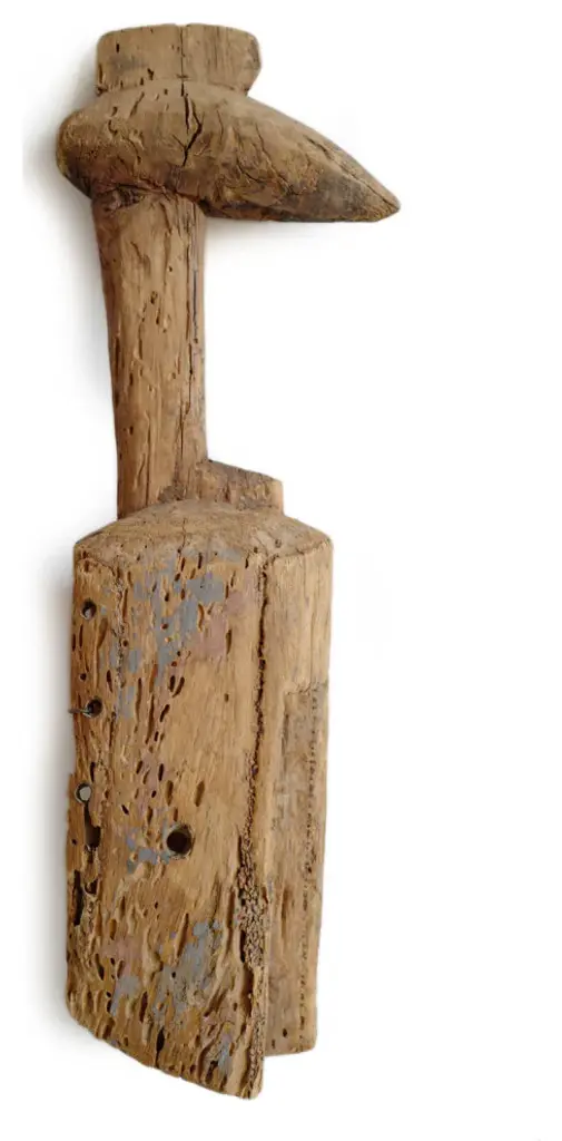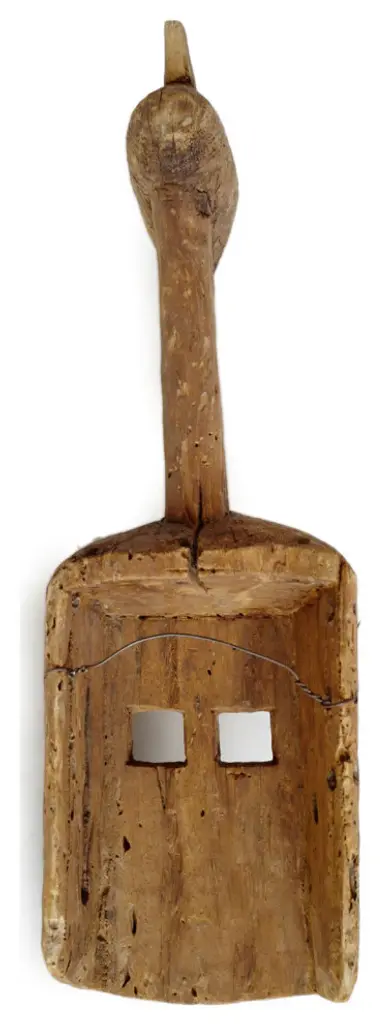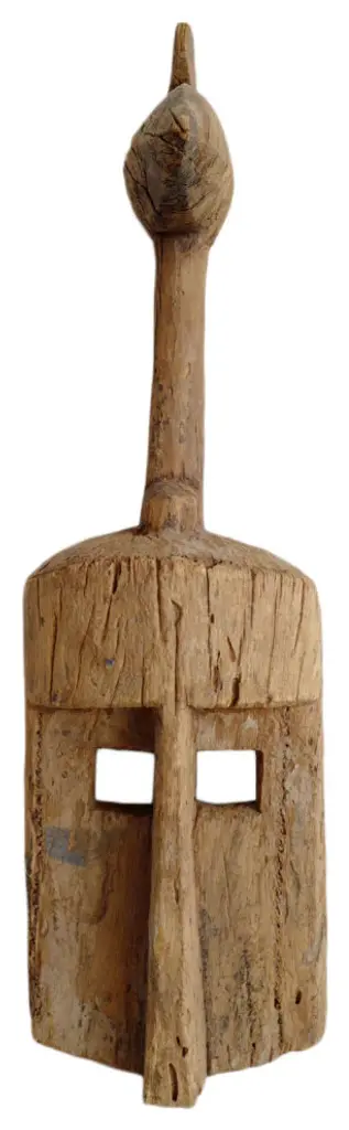 Consigned authentic vintage Dogon tribal wood mask from Mali with bird/crested guinea fowl carved on top. Traditional carved square eyes and remnants of original blue paint. Wonderful signs of age and use.Condition: Great, with signs of age and useOrigin: MaliEra: Mid 1900''s