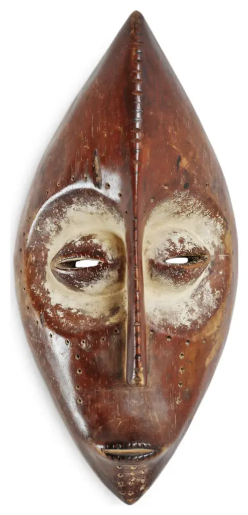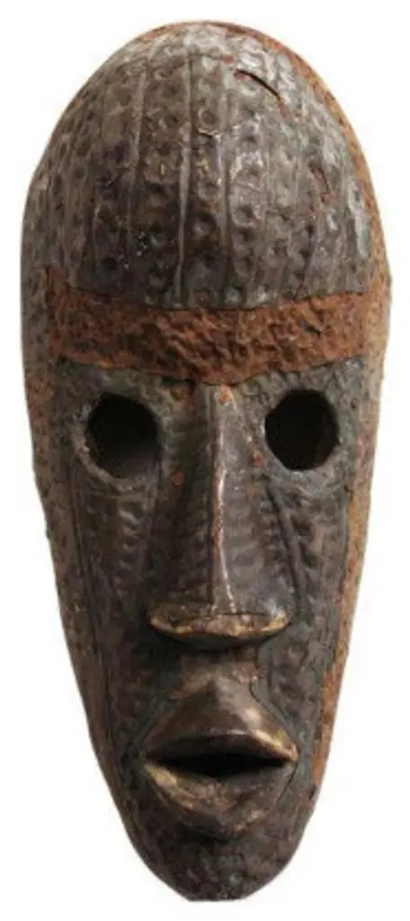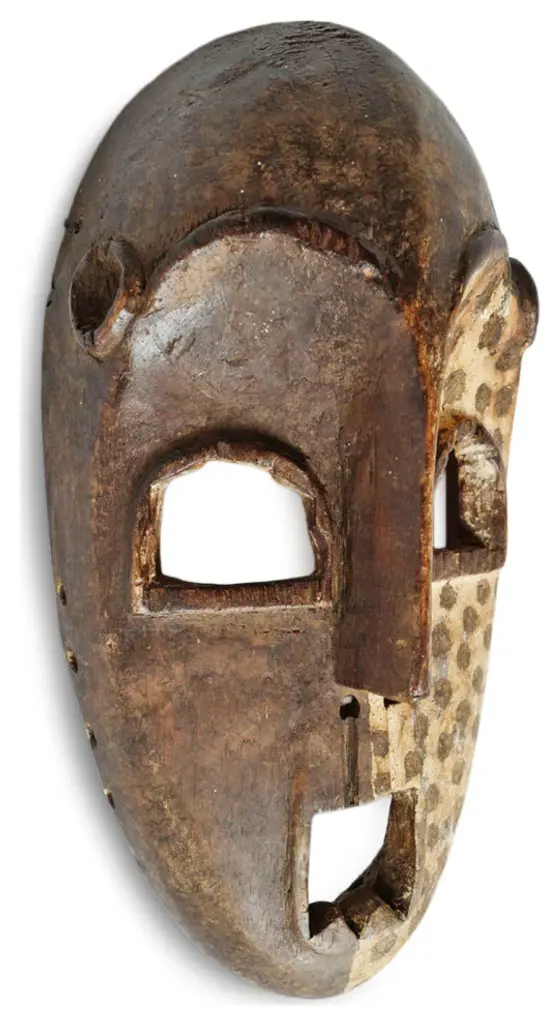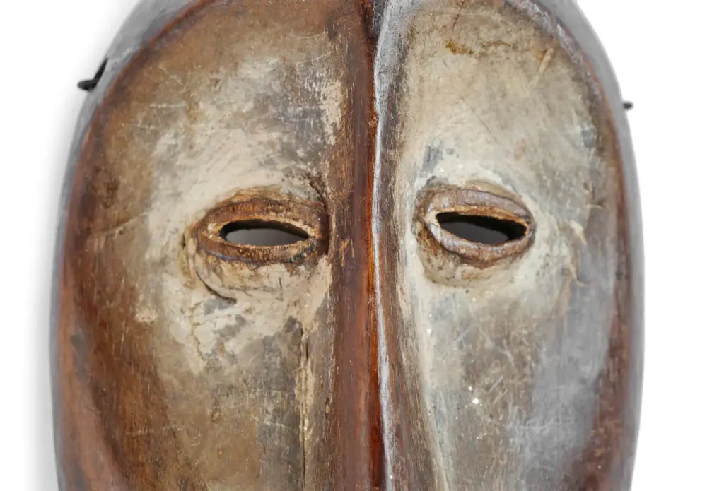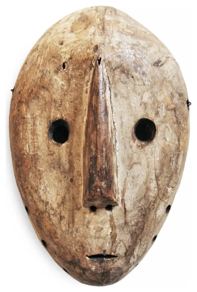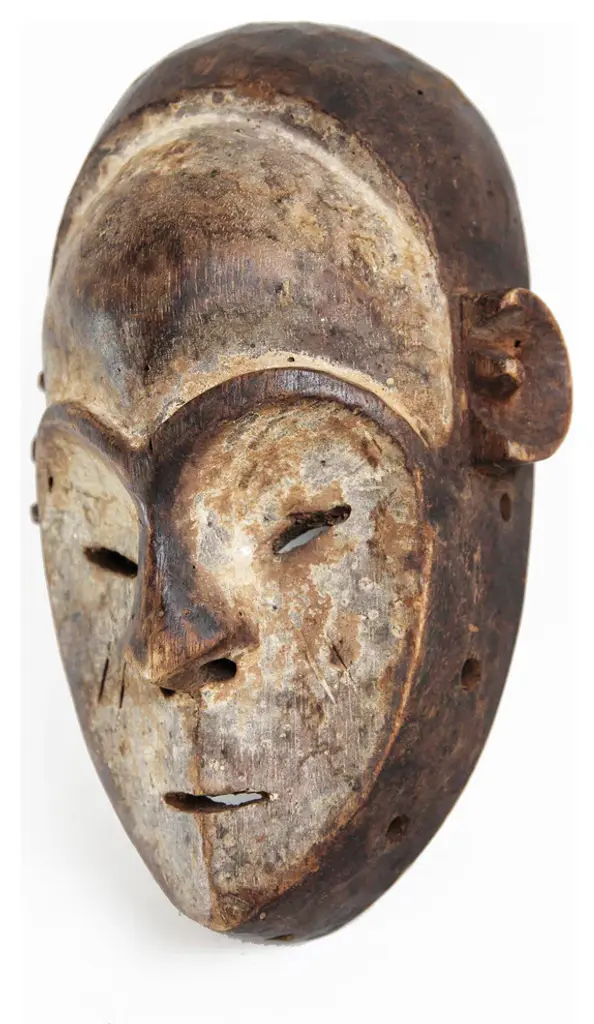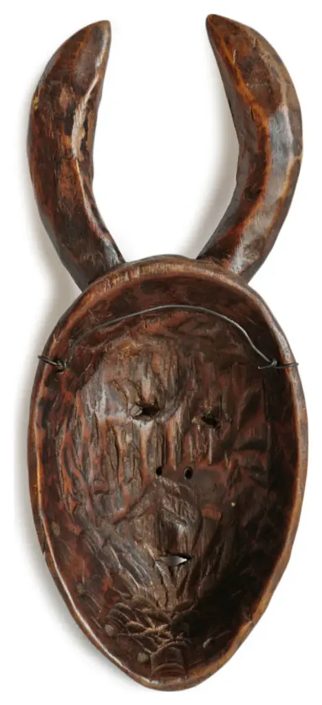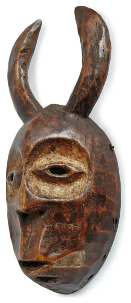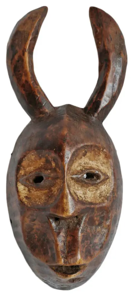 Consigned original Lega mask from Democratic Republic of Congo. Features carved wood horns on top of head. Ready to hang on its own or great in groupings.Condition: Great, with signs of age and useOrigin: Democratic Republic of CongoEra: Mid 1900''s