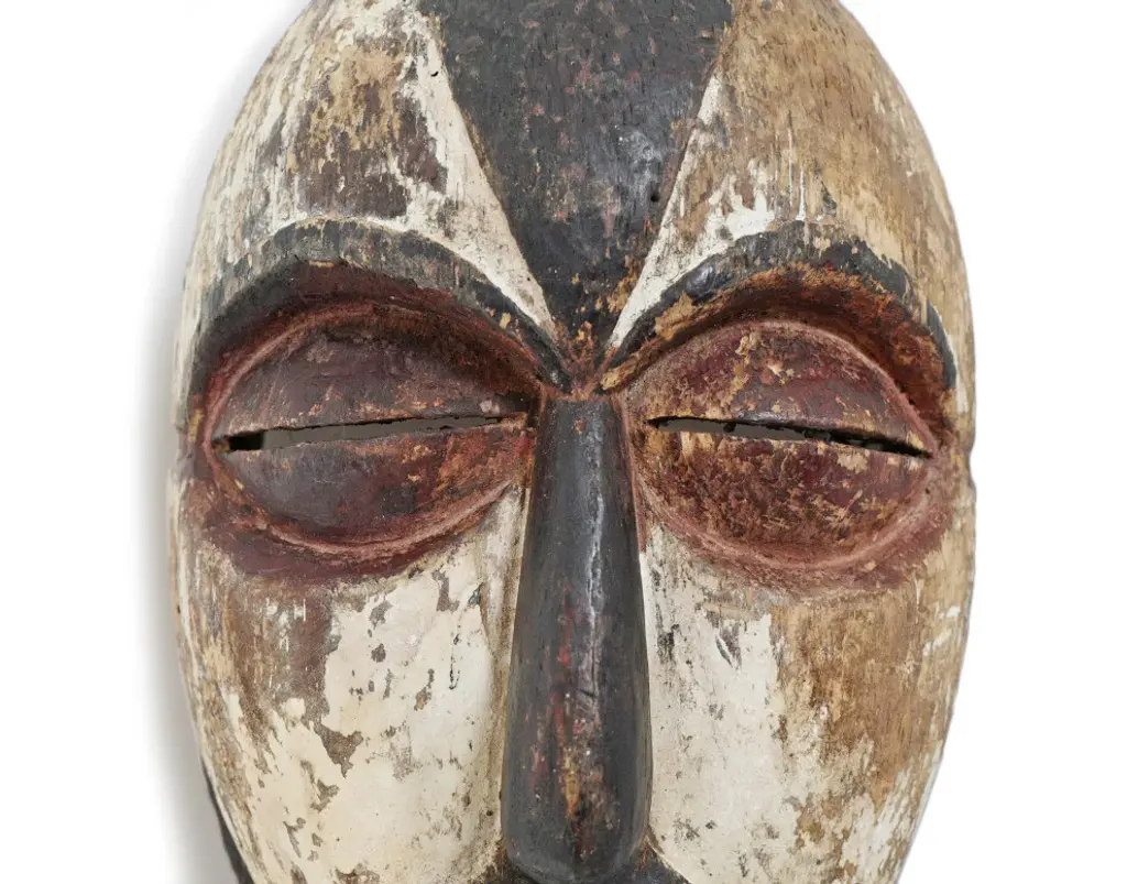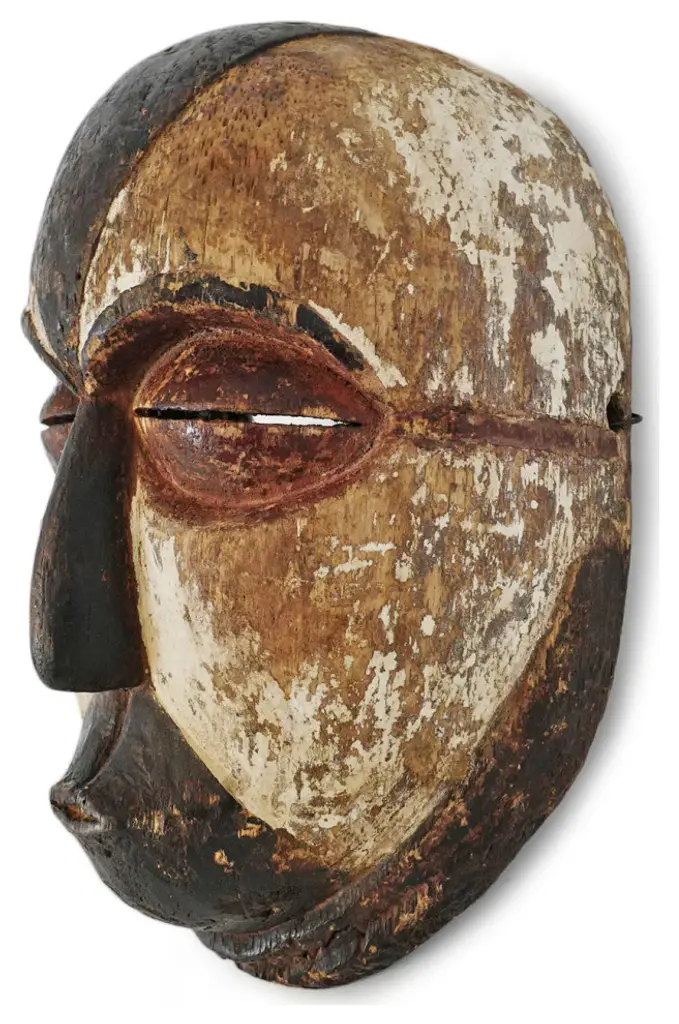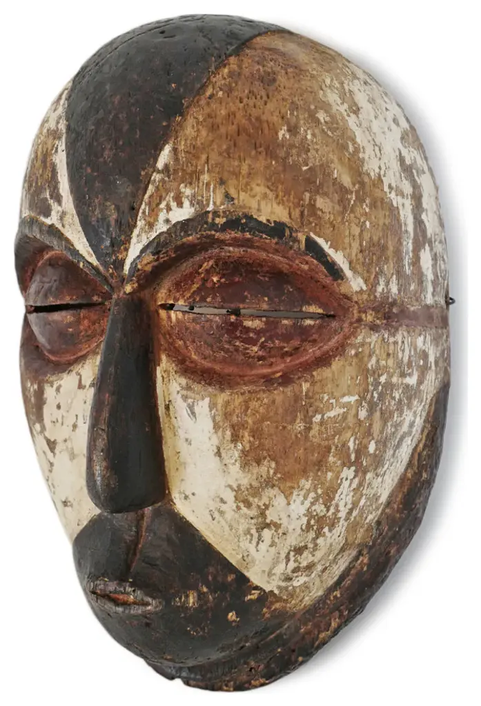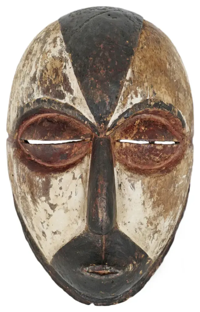 Consigned old rare Luena Congo mask with attractive worn back, red, and white natural pigments. Ready to hang and display in your collection.Condition: Great, with signs of age and useOrigin: Democratic Republic of CongoEra: Mid 1900''s