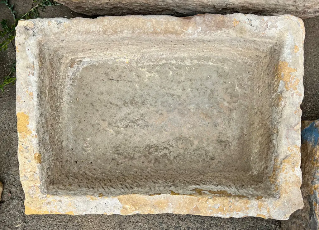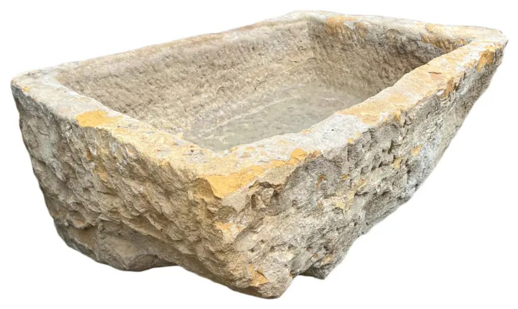 Consigned large vintage old sandstone trough from north India. Beautiful rustic aged textures and patina. Condition: Good, with signs of age and useOrigin: IndiaEra: Mid 1900''s