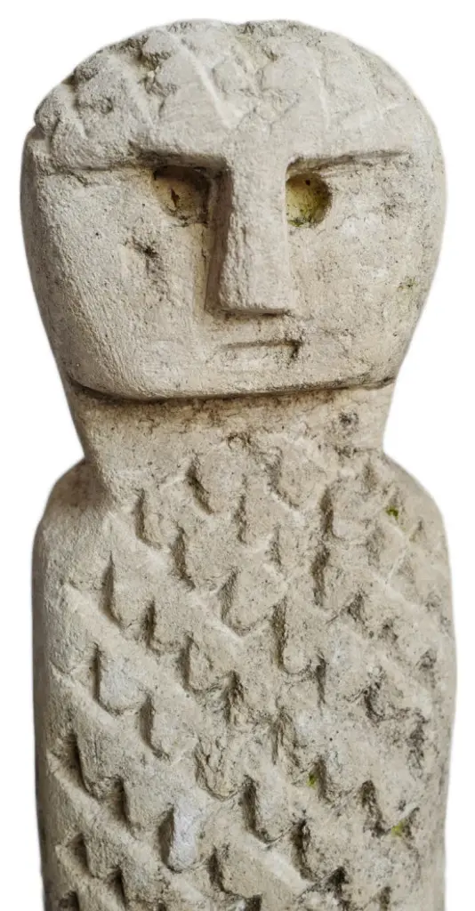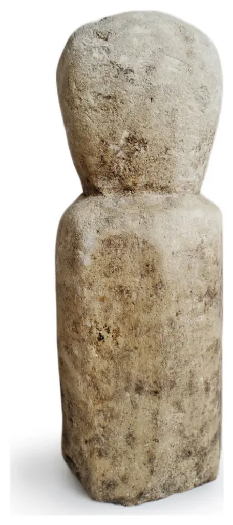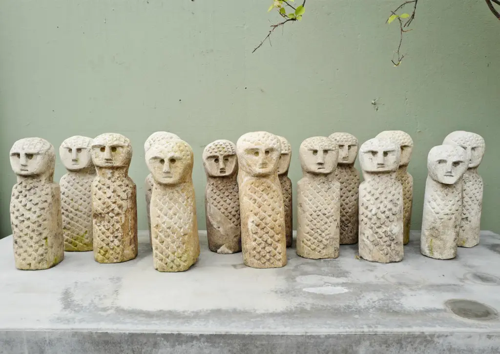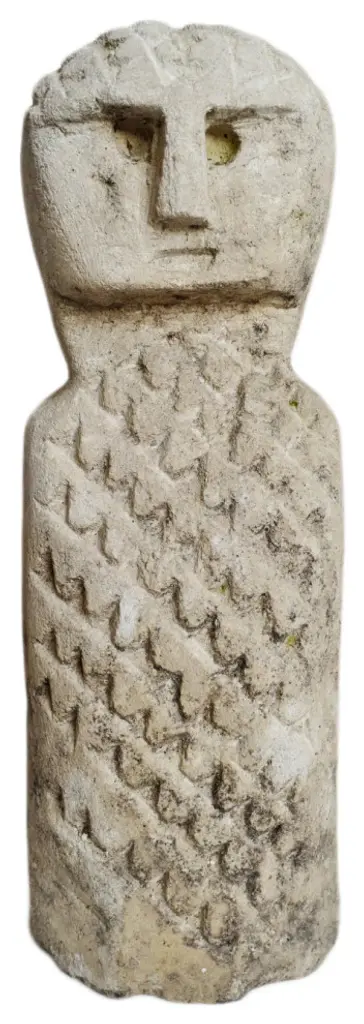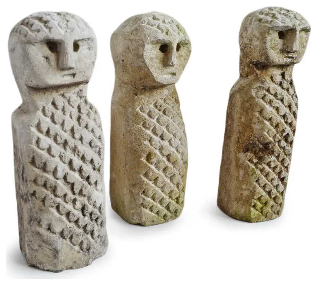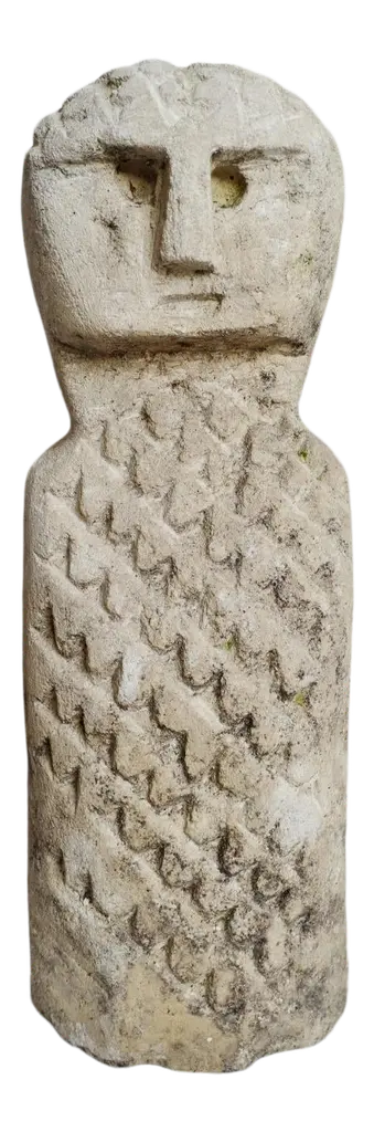 Consigned original Timor stone property markers from Java. These wonderful hand carved sandstone property markers were originally used to mark corers and areas of different properties in the jungle floor or used as property guardians. Great outdoor or indoor collectors display pieces. Each slightly unique with hand carving detail and natural stone variations. Each sold individually. This item is non-returnable - all sales are final.Condition: Great, with signs of age and useOrigin: IndonesiaEra: Mid 1900''s