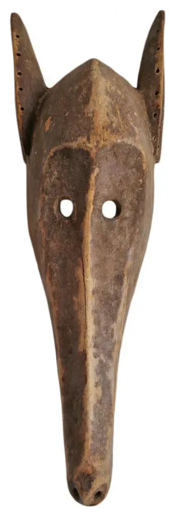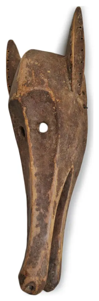 Consigned vintage original Bamana hyena mask. Beautiful signs of age and use. Ready to hang on display as wall art.Condition: Great, with signs of age and useOrigin: MaliEra: Early - Mid 1900''s