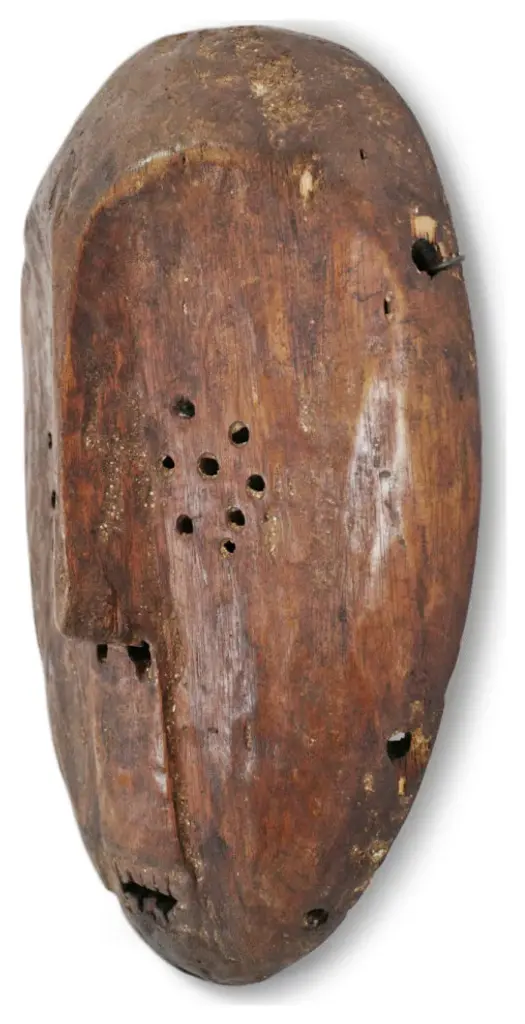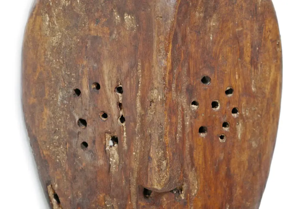 Consigned vintage Lega mask from Democratic Republic of Congo. Stylized minimal features and beautiful signs of age and use. Traditionally used as identification symbol or for initiation purposes.Condition: Great, with signs of age and useOrigin: Democratic Republic of CongoEra: Mid 1900''s