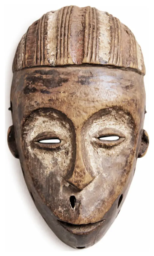 Consigned original wood carved Lega Passport Mask from Democratic Republic of Congo. These special passport masks were found in the rainforest region of the Bwami or Lega. They are symbols of the owner''s rank within the society and represent moral or social values. They are traditionally used during initiation rites and conjunction with dance, poetry, and song, giving wisdom to members of the society.Condition: Great, with signs of age and useOrigin: Democratic Republic of CongoEra: Mid 1900''s