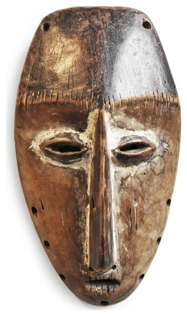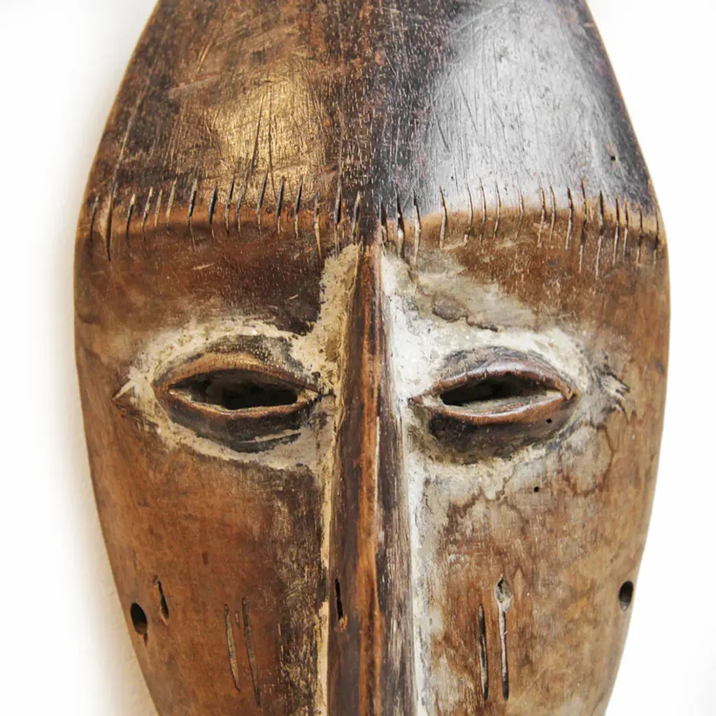 Original wood carved Lega Passport Mask from the Democratic Republic of Congo in Central Africa. These special passport masks were found in the rainforest region of the Bwami or Lega . These masks are symbols of the owner''s rank within the society and represent moral or social values. They are traditionally used during initiation rites and in conjunction with dance, poetry, and song, giving wisdom to members of the society. Condition: Great, with signs of age and useOrigin: Democratic Republic of CongoEra: Mid 1900''s