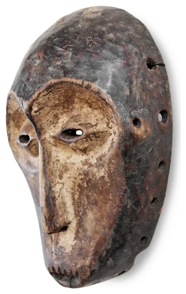 Consigned original wood carved Lega Passport Mask from Democratic Republic of Congo. These special passport masks were found in the rainforest region of the Bwami or Lega. They are symbols of the owner''s rank within the society and represent moral or social values. They are traditionally used during initiation rites and conjunction with dance, poetry, and song, giving wisdom to members of the society.Condition: Great, with signs of age and useOrigin: Democratic Republic of CongoEra: Mid 1900''s