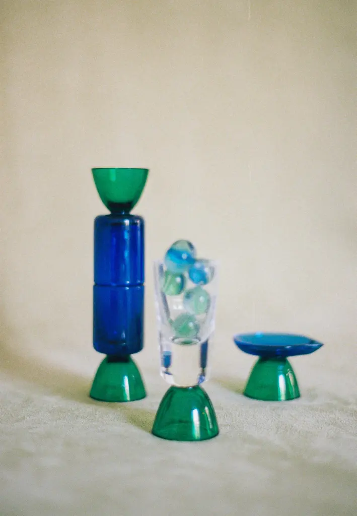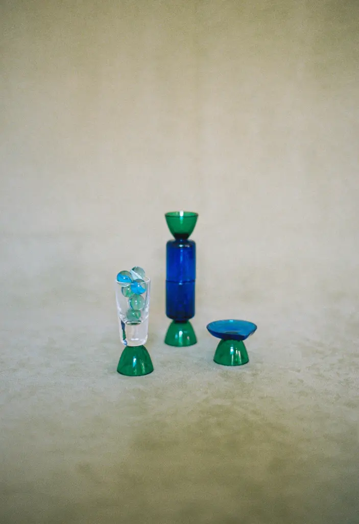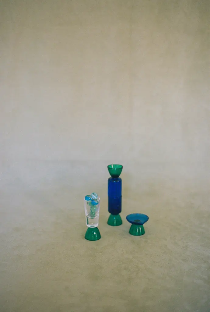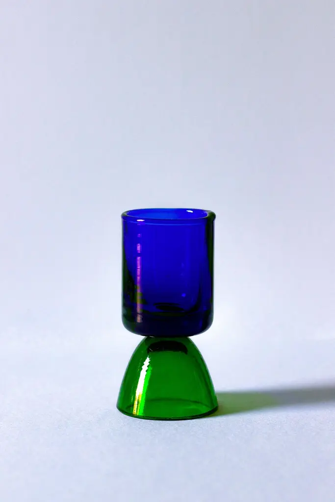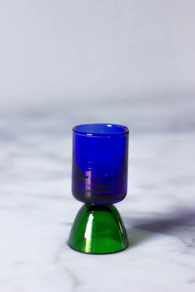 Contemporary Crystal Blue Green Tequila Glass Shot Handcrafted Natalia Criado