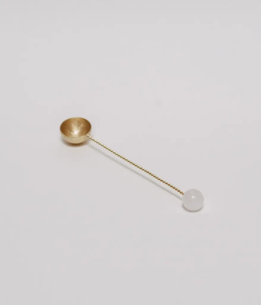 Elevate your morning coffee or tea ritual with our torch spoon, meticulously handcrafted in Italy by skilled artisans. Fashioned from metal and plated brass, each spoon features a hand-carved stone adornment adding a touch of jewelry-inspired elegance. Color: silver plated brass Stone: green quartzJoyas en Casa CollectionHandcrafted in Italy