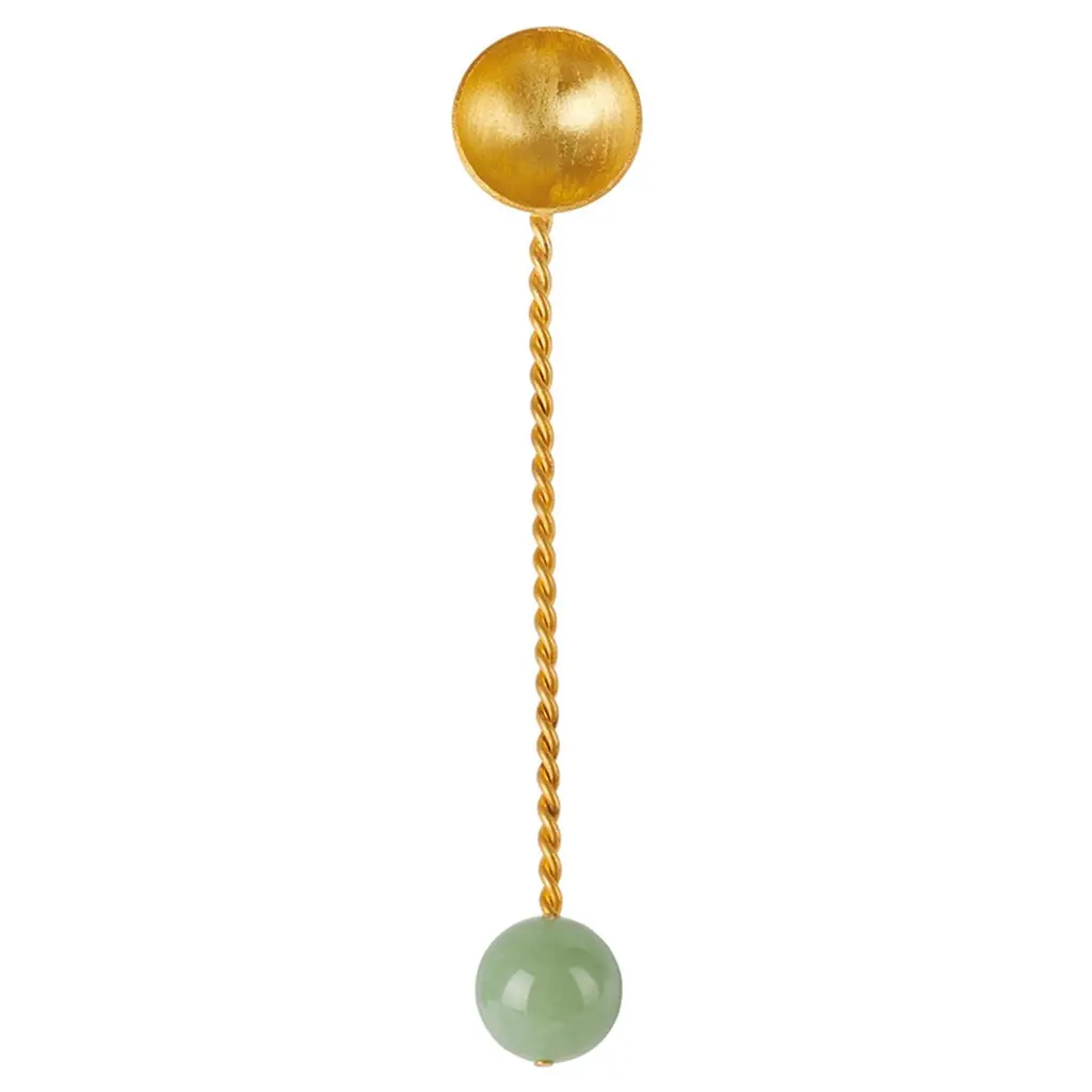 Contemporary Gold Plated Spoon Set Green Quartz Stone Handcrafted Natalia Criado