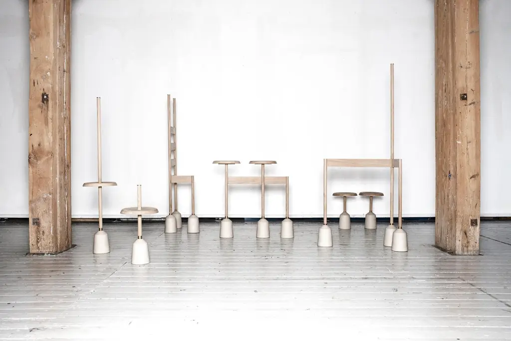 Objects of use is the result of two worlds meeting. Two professions intertwining. Two people crossing, clashing and correlating. Objects of use is the fusion of the mind of an architect and hand of a designer, the hand of an architect and the mind of a designer. It is a borderland, a hybrid. A place to ask what constitutes architecture and what justifies the label of design. A time to explore relations between and differences in space, function and action. “Objects of use” is an immediate meeting and a process. It is thinking as well as creating.The common ground is an intuitive approach, a technical knowledge and a professional craftsmanship.Oakwood on base of ceramics.National Solo Price winner at Spring exhibition 2015.